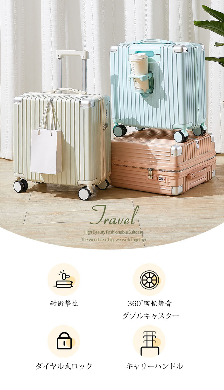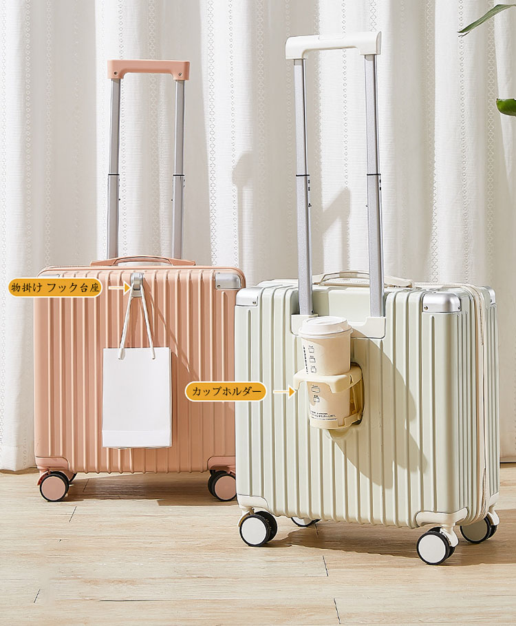 スーツケース フック台座付き カップホ バッグ スーツケース キャリーバッグ 特集 ホワイト グリーン ライトグリーン ピンク スカイブルー ブラック 18inch 20inch
