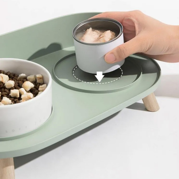 ・フードとお水や、2種類のフードなど、自由に組み合わせて使えるボウルとスタンドのセット。