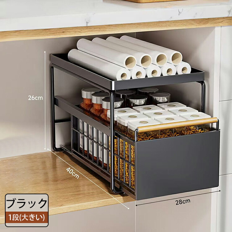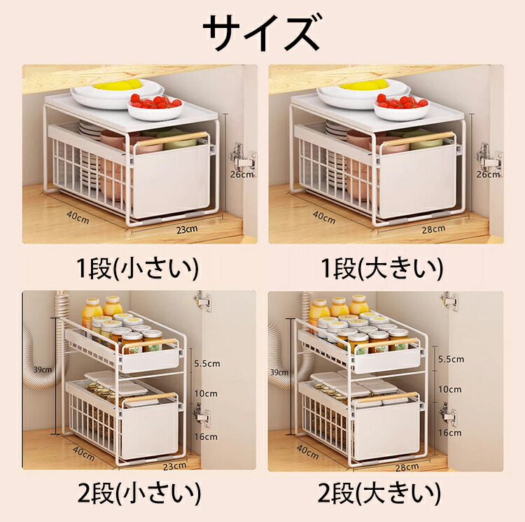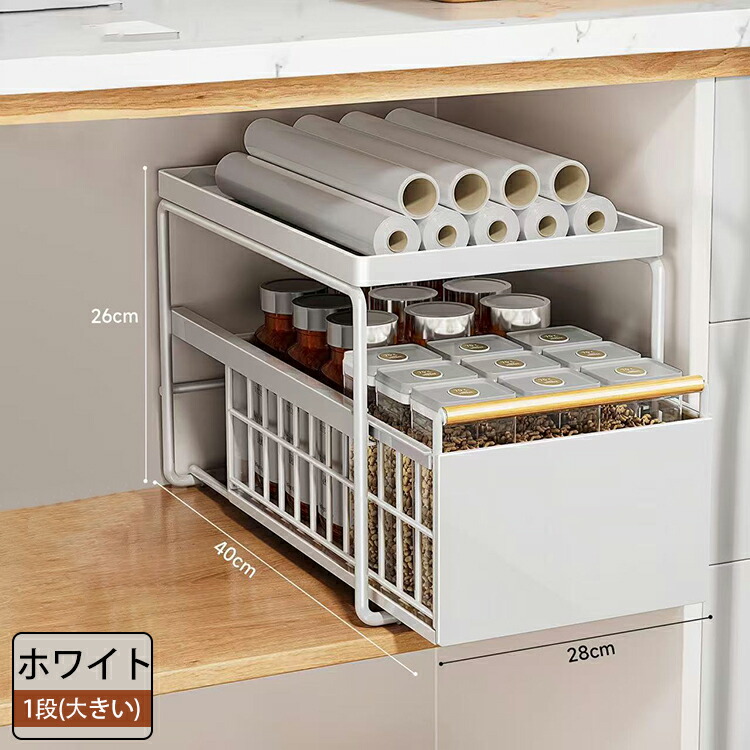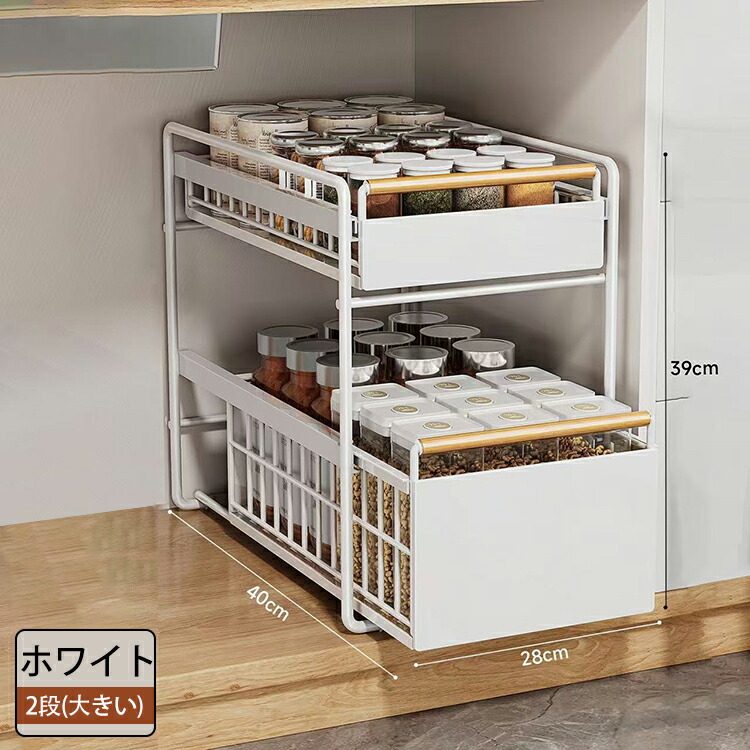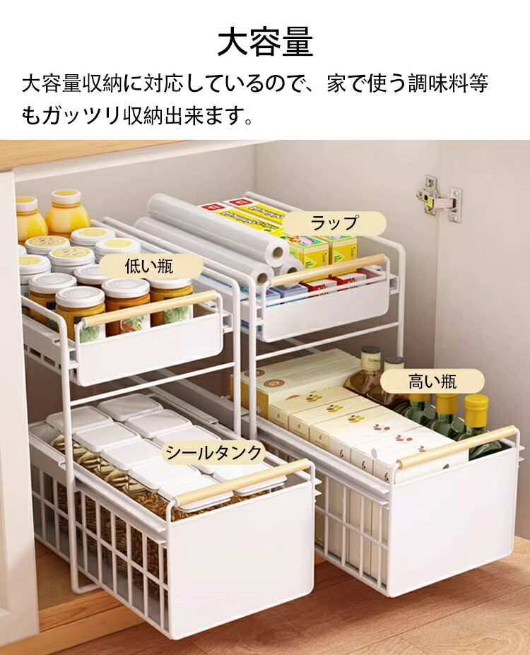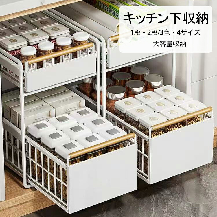 キッチン下収納 シンク下 スライド収納 スムーズ 引き出し 深型 スライドラック 保存ラック 収納バスケット 伸縮ラック 1段 2段 大容量収納 調味料収納 洗面台下 食器収納 収納棚 台所 流し台下