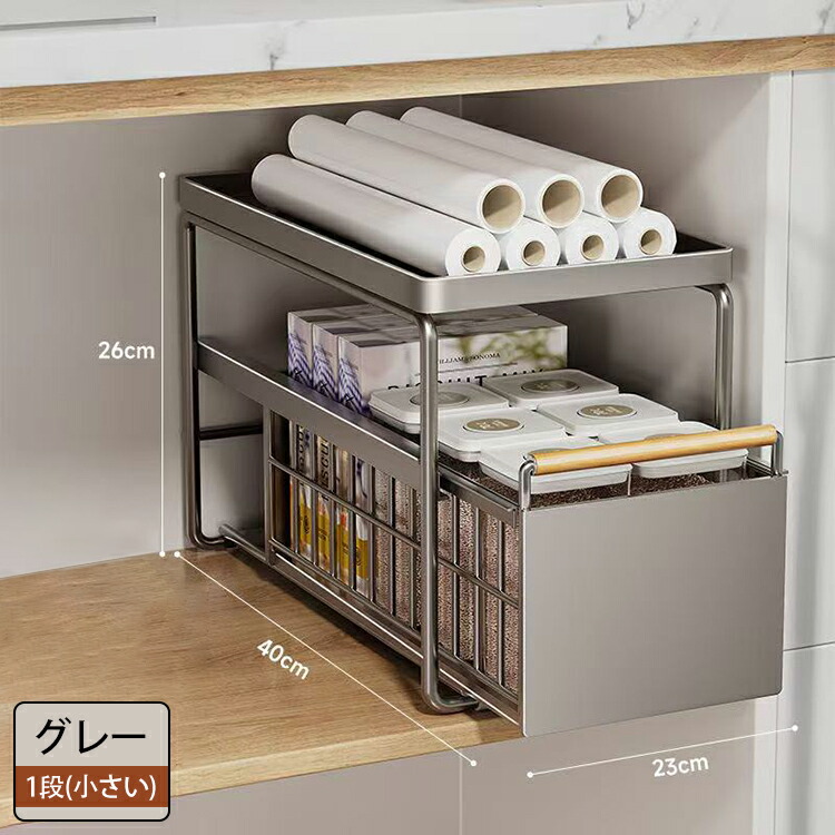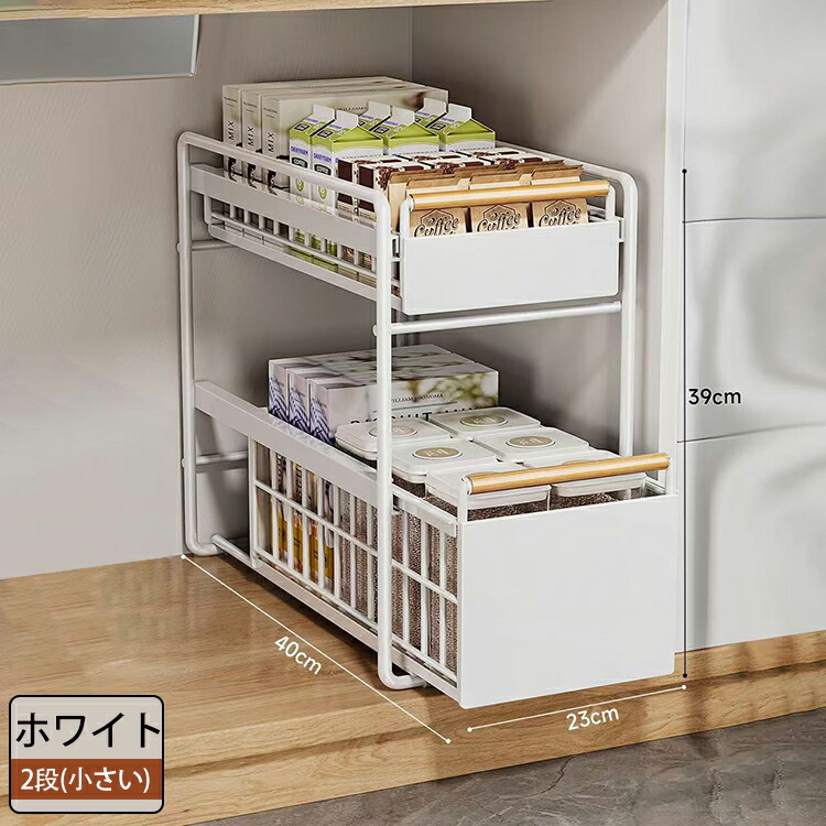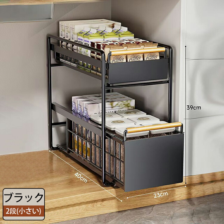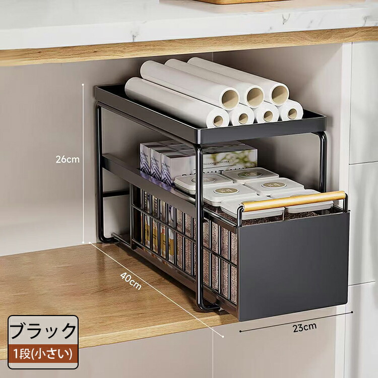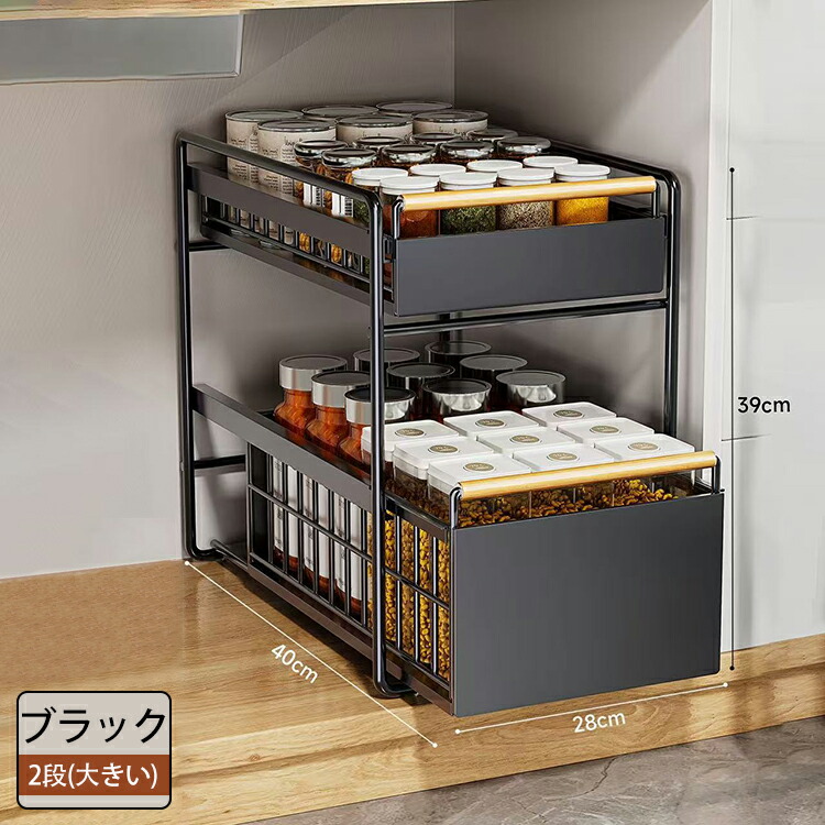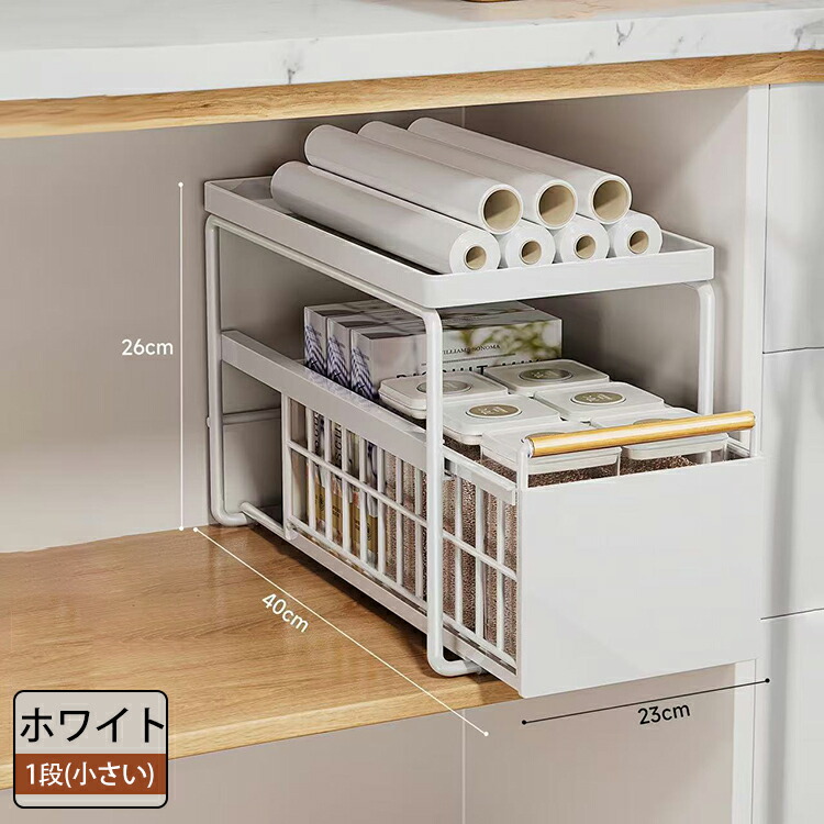 キッチン下収納 シンク下 スライド収納 スムーズ 引き出し 深型 スライドラック 保存ラック 収納バスケット 伸縮ラック 1段 2段 大容量収納 調味料収納 洗面台下 食器収納 収納棚 台所 流し台下