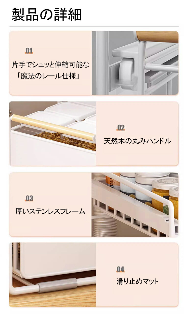 ※片手でシュッと伸縮可能な「魔法のレール仕様」:特殊ベアリング採用で、重い食器を入れてもスムーズ動作!
