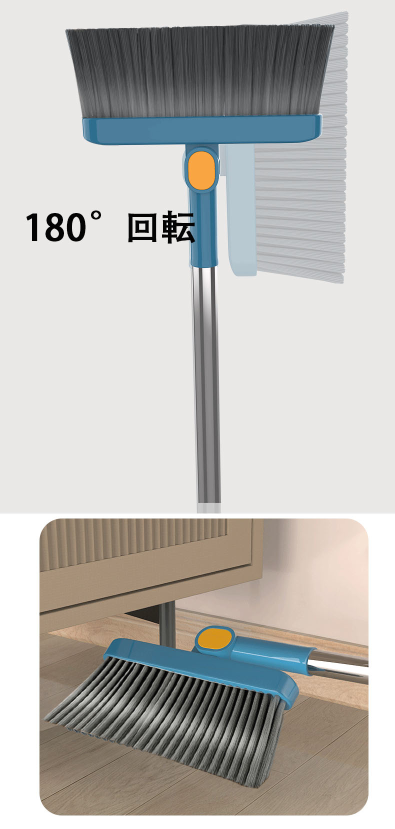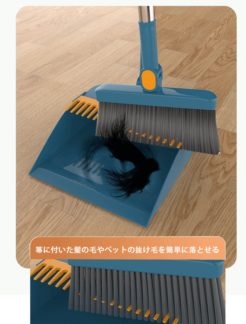 【掃除楽々】 ご自分のニーズに従い、ほうきは180°回転、腰を曲げる必要がなく、無駄な力を使わずご掃除いただけます。細かいホコリも掃除でき、さらにちりとりの上に櫛形のフィルターが付いており、箒に付いた髪の毛やペットの抜け毛を簡単に落とせる