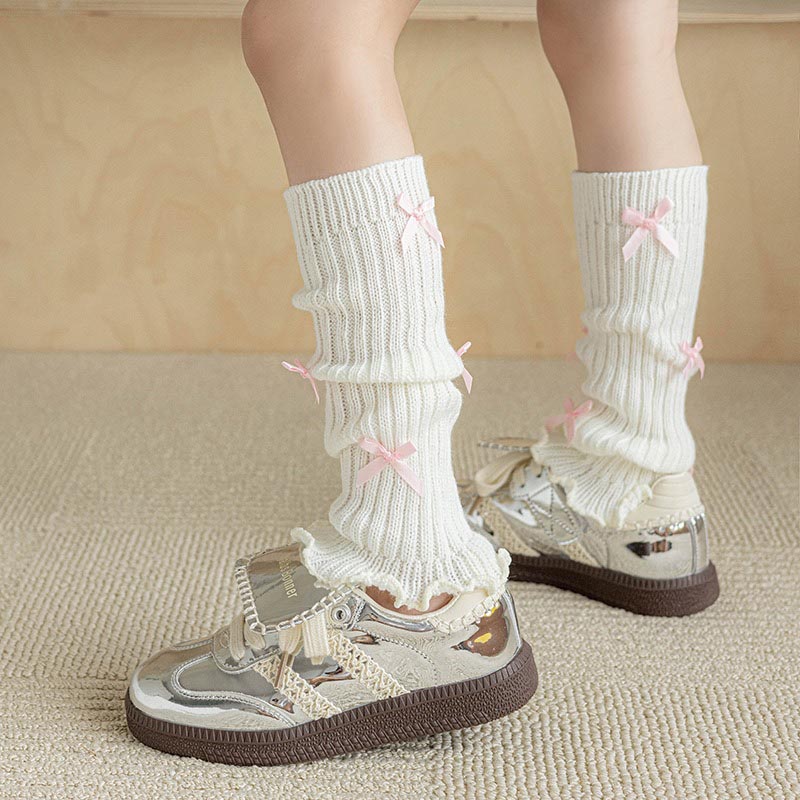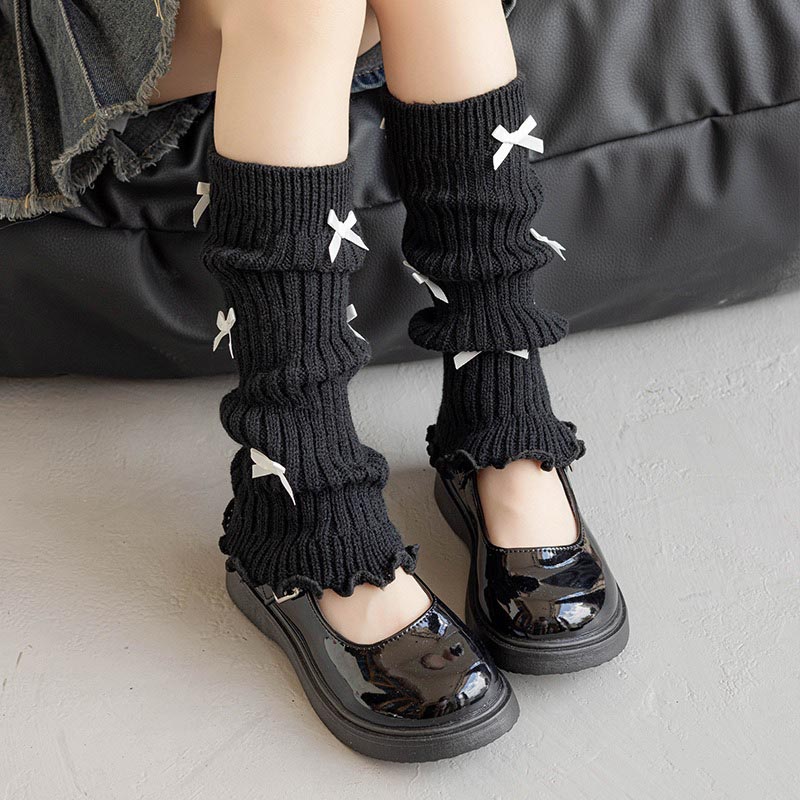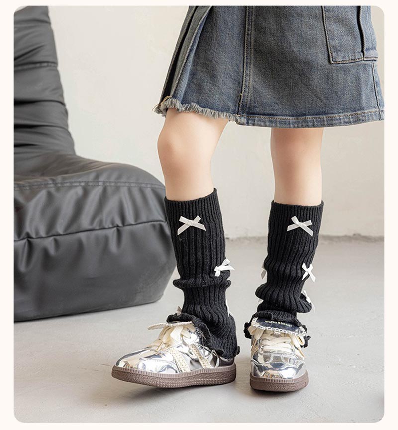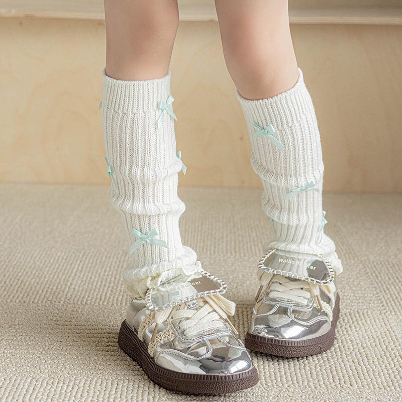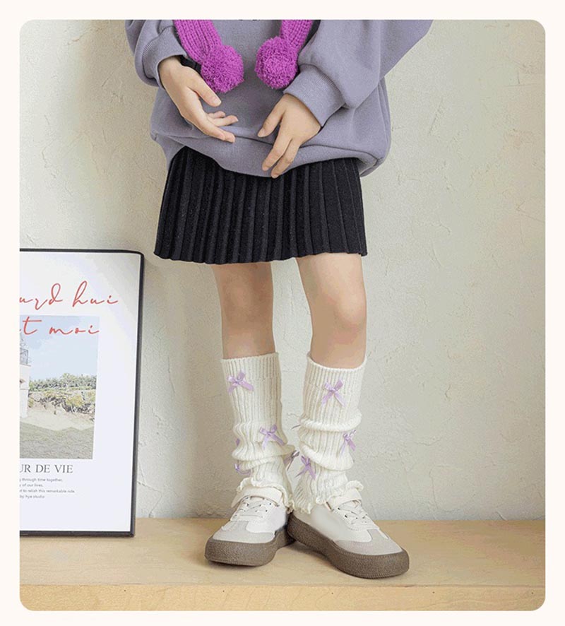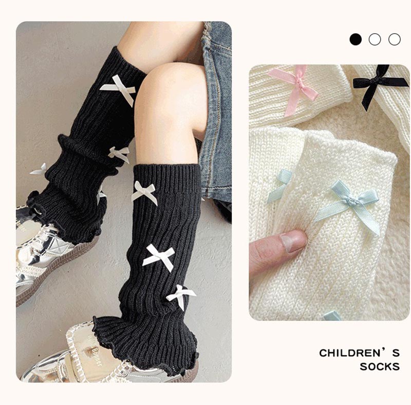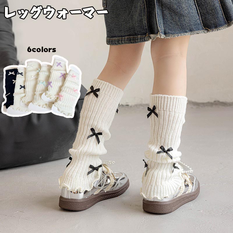 レッグウォーマー ルーズソックス風 靴下 カラバリ豊富 防寒対策 指なし 可愛い おしゃれ シンプル デイリー カジュアル ダンス 女児 ダンス衣装 子供用 キッズ リボン付き 無地 ハイソッ 女の子