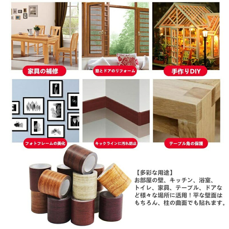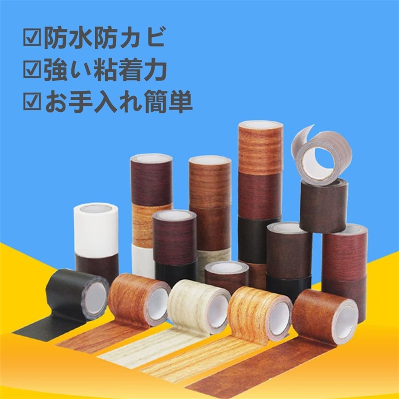 木目 テープ 防水 防カビ マスキングテープ 木目調シール 強い粘着力 木口テープ 家具修理テープ フローリング 巾木 ウォールナット DIY リメイクシート 防油 防汚 補修テープ 床 窓枠 家具の
