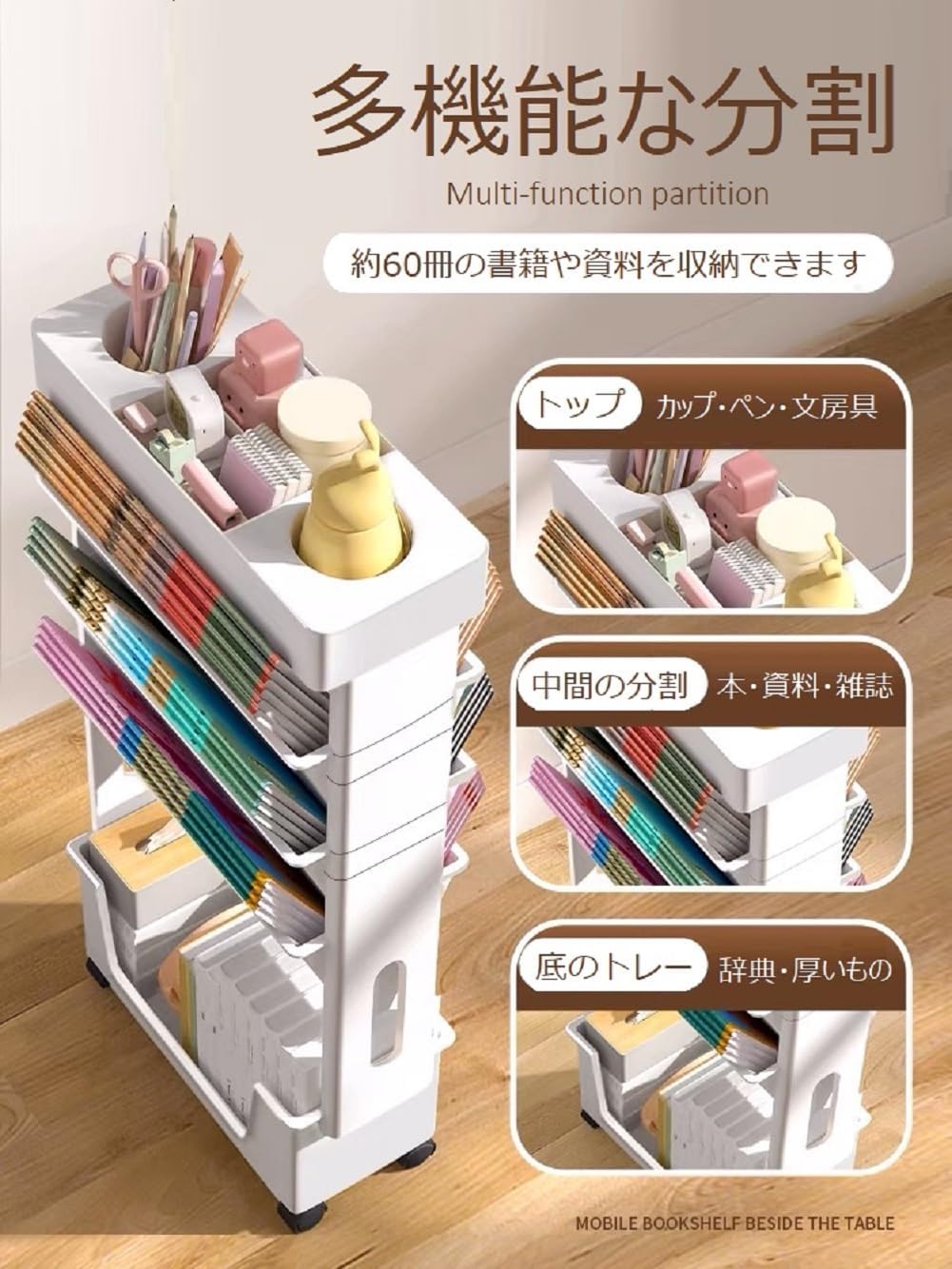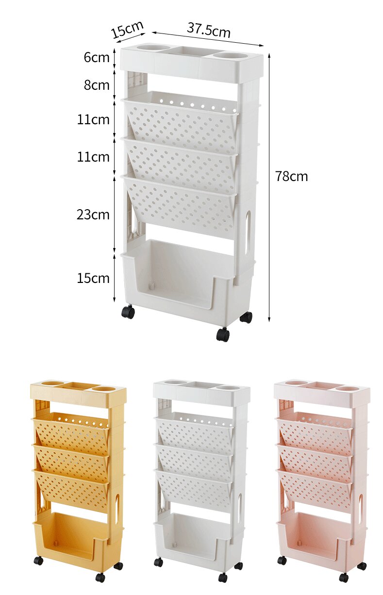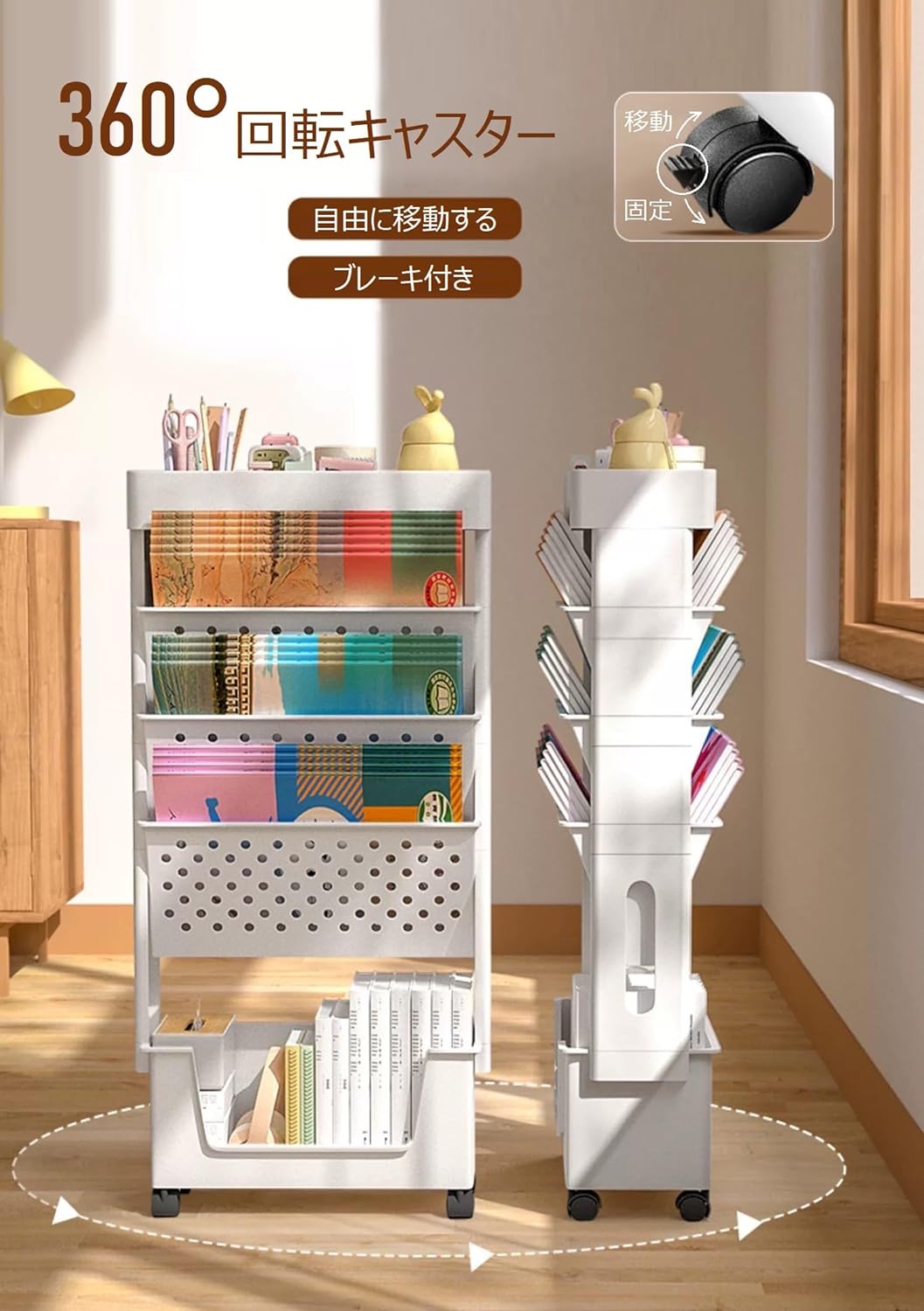 本棚 書類棚 5段 書類ワゴン デスク収納ラック 書類収納ラック 移動式 多機能ワゴン コンパクト フリーキャスター 収納 ファッション キッチン 調味料収納 文房具収納 日用品収納 化粧品収納 教室