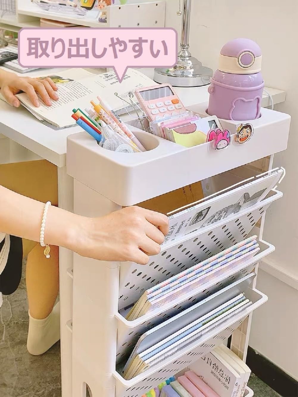 本棚 書類棚 5段 書類ワゴン デスク 文房具 事務用品 机上収納 整理用品 ブックスタンド 超目玉商品 ホワイト グリーン ピンク イエロー