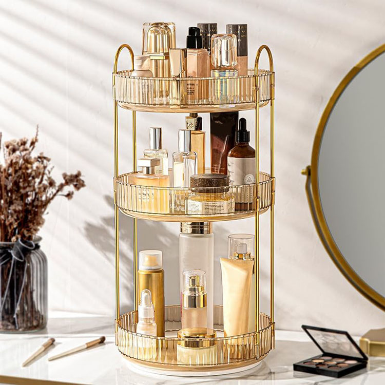 【大容量】 3層デザインで、カウンターのスペースを80%節約し、香水、マニキュア、その他のスキンケアや化粧品など、30~40本のボトルを収納できます。