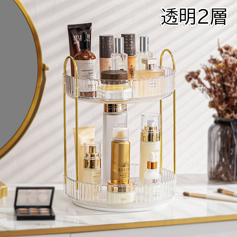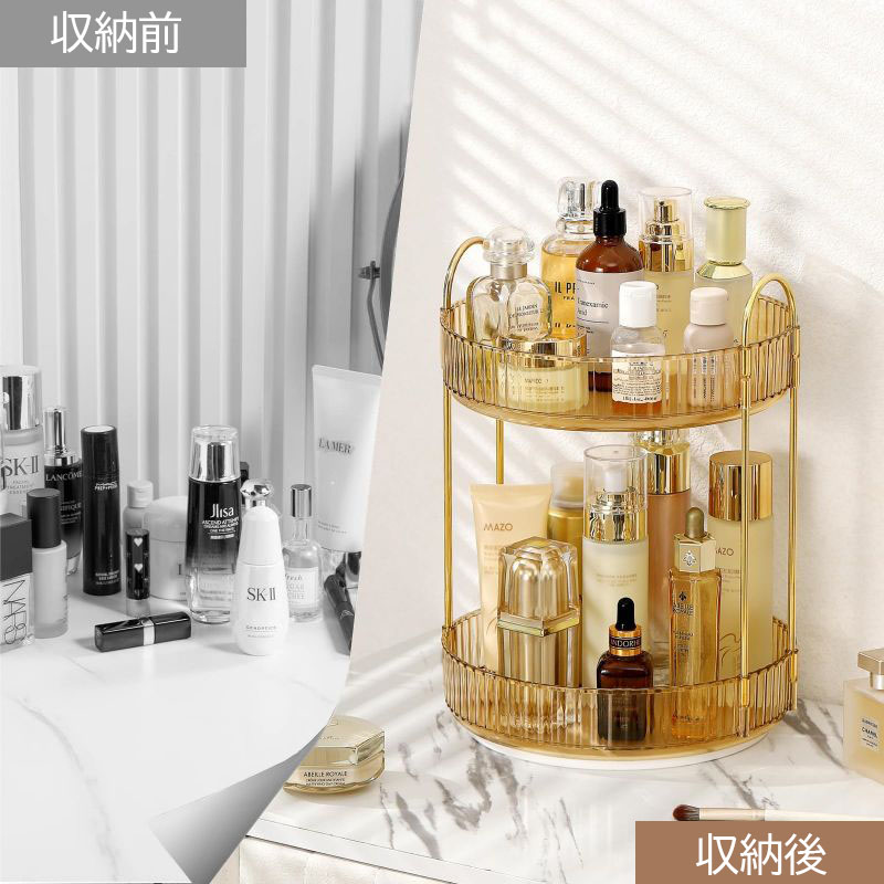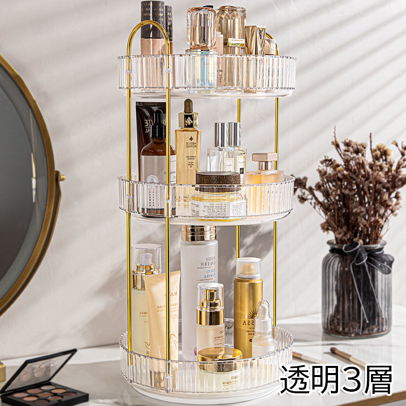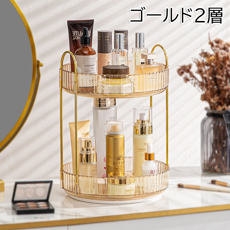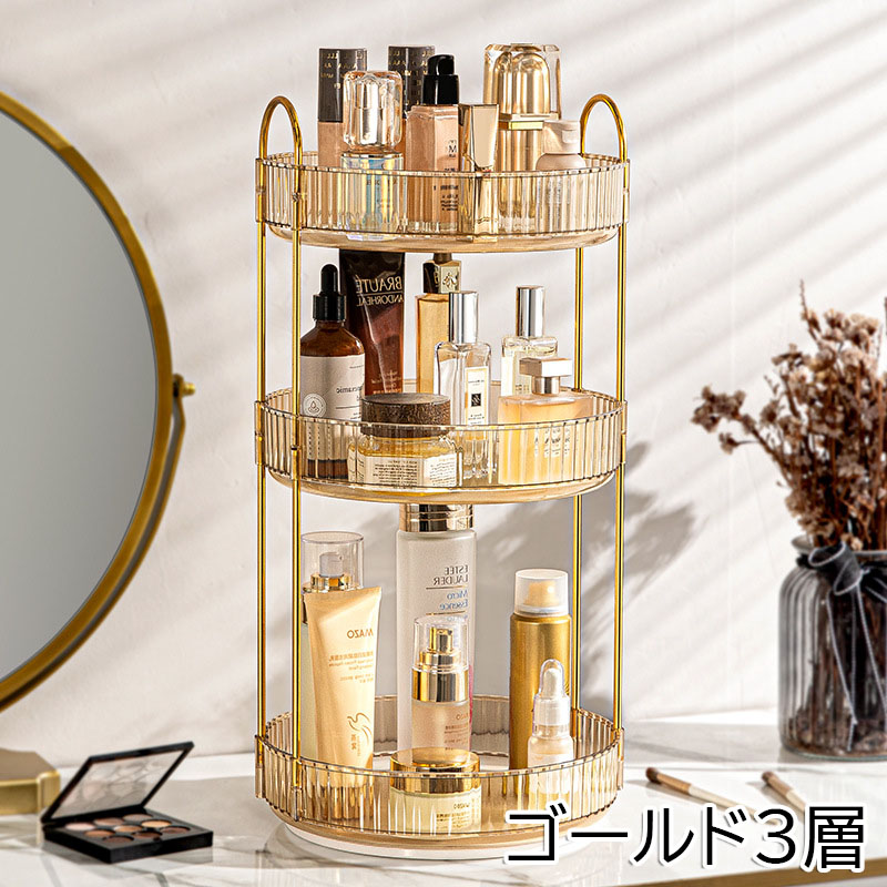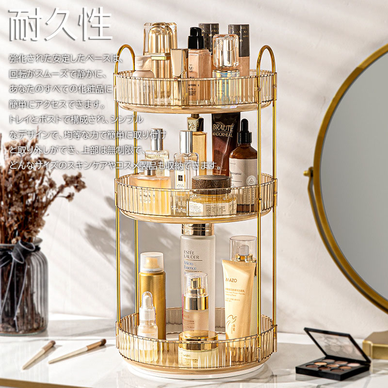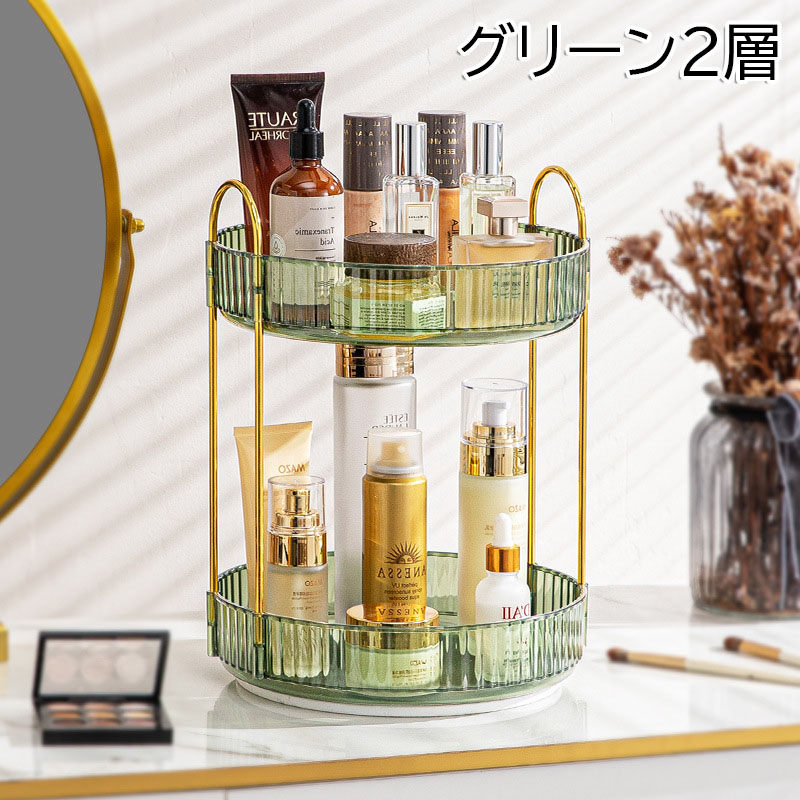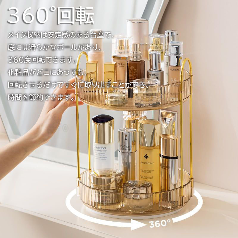 コスメ収納 透明 360°回転 メイク ゴールド2層 透明2層 グリーン2層 ゴールド3層 透明3層 グリーン3層