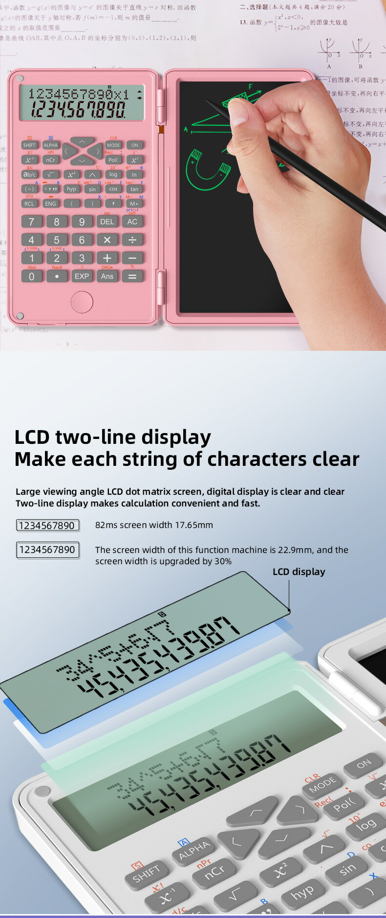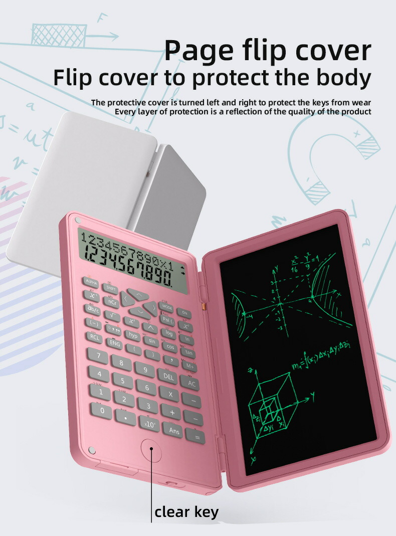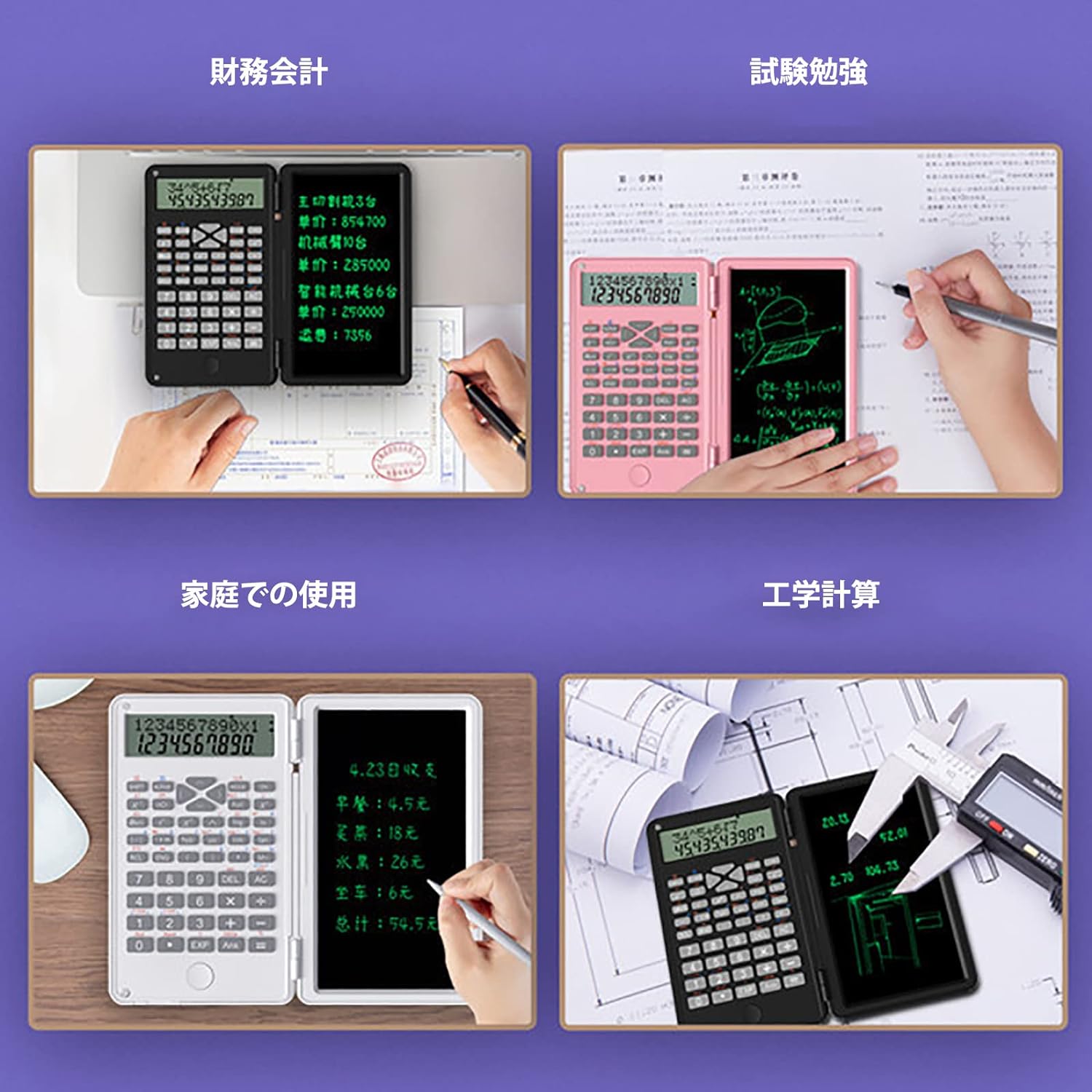 関数電卓 電卓付き電子メモパッド 417関数 機能 微分積分 統計計算 数学自然表示 4ライン表示 関数計算機 数学電卓 折りたたみ式 建築現場 大学用 ワンタッチ消去 オフィス、学生、仕事用 物理