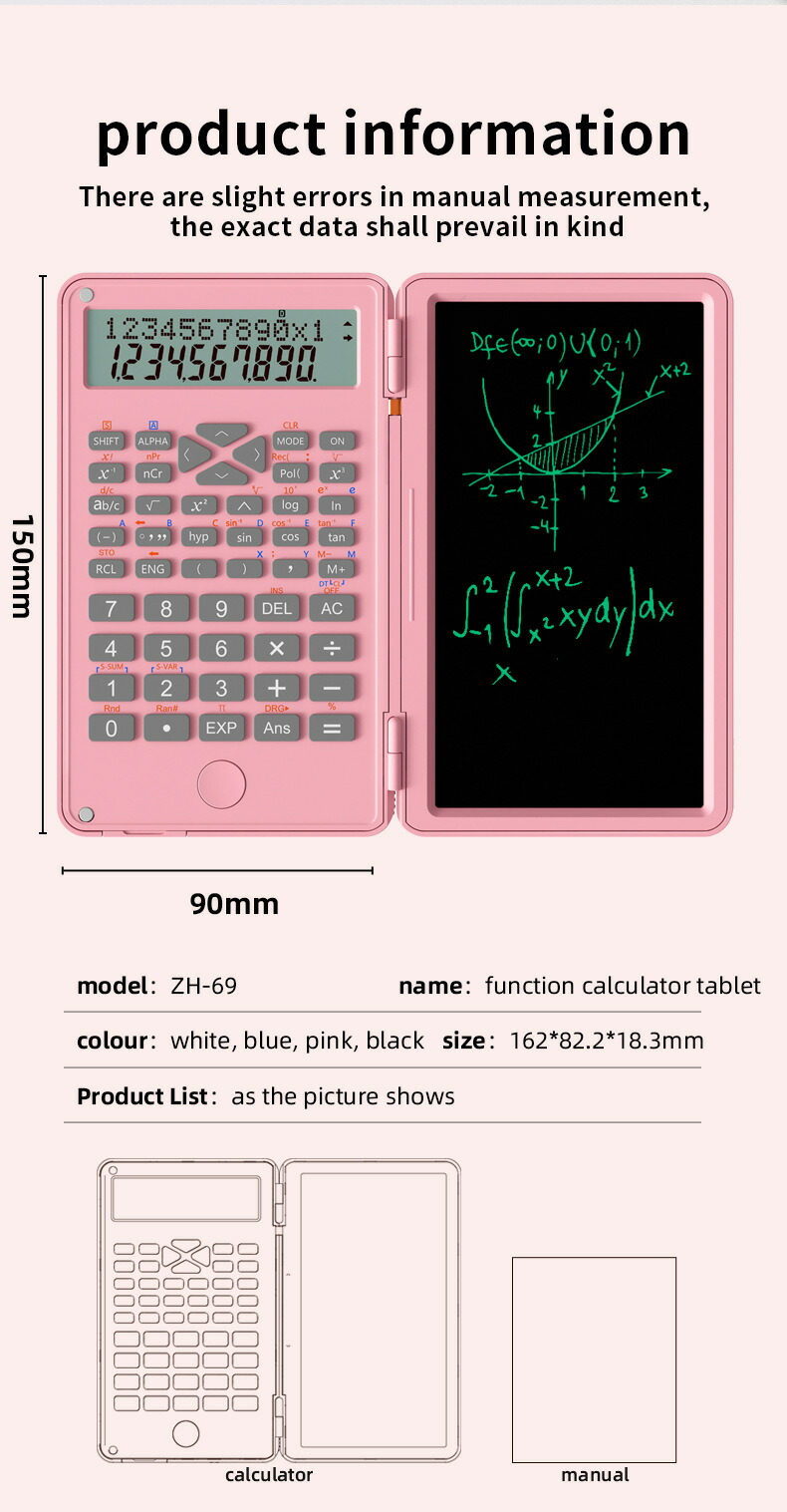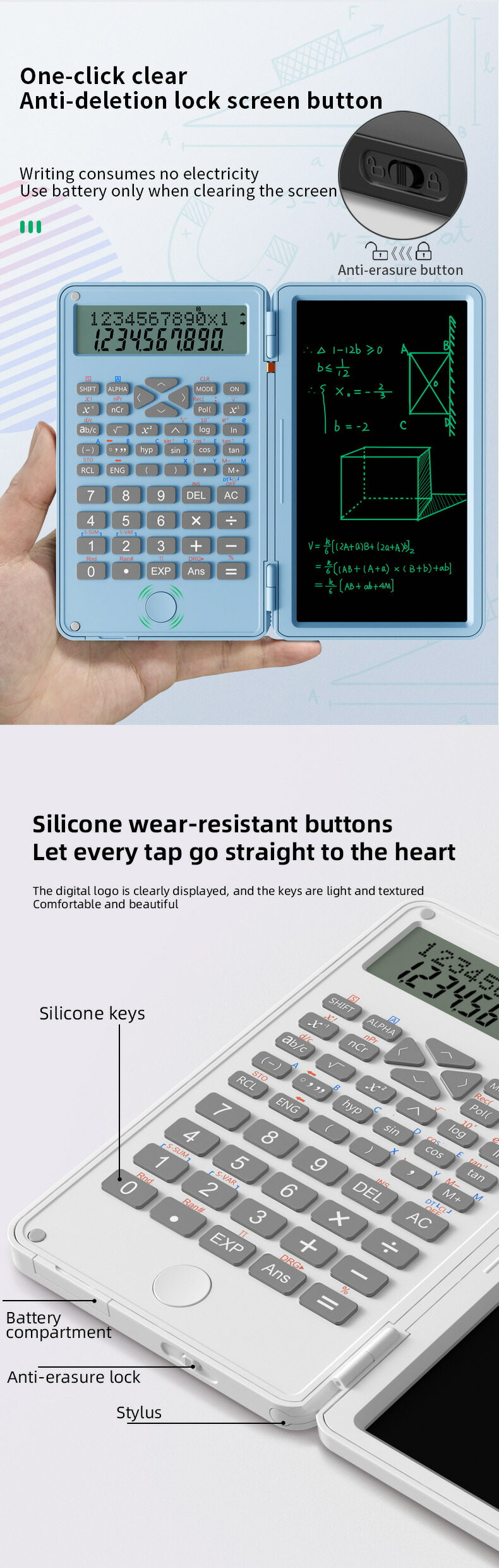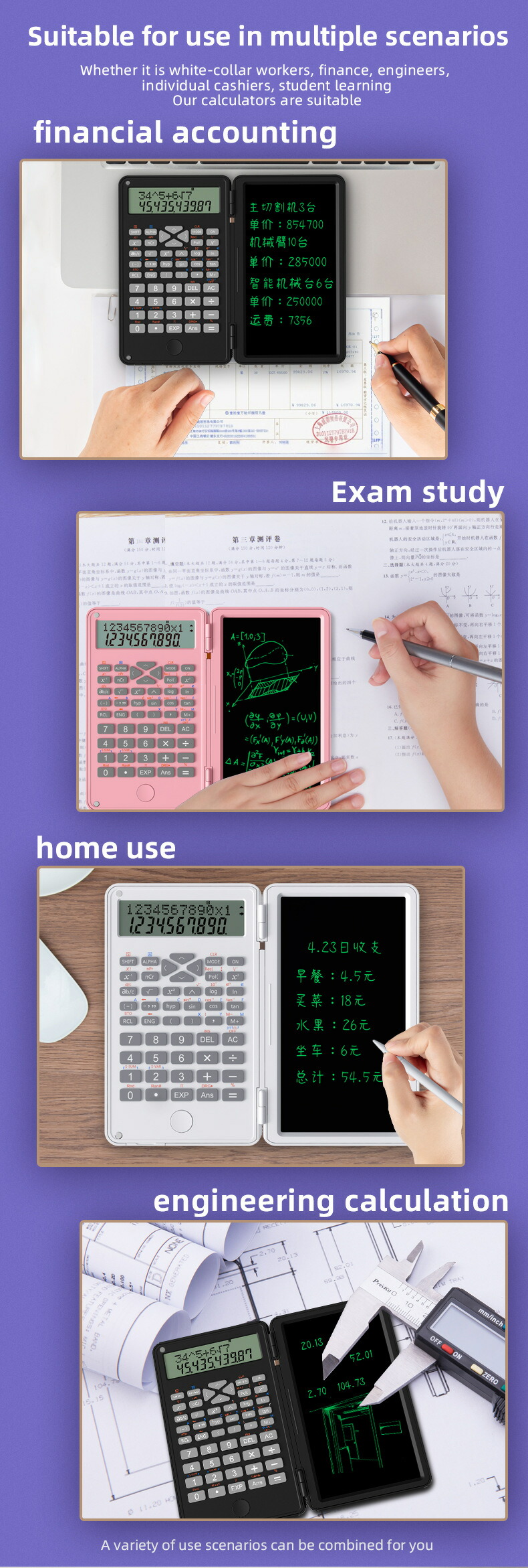 関数電卓 電卓付き電子メモパッド 417関数 機能 微分積分 統計計算 数学自然表示 4ライン表示 関数計算機 数学電卓 折りたたみ式 建築現場 大学用 ワンタッチ消去 オフィス、学生、仕事用 物理