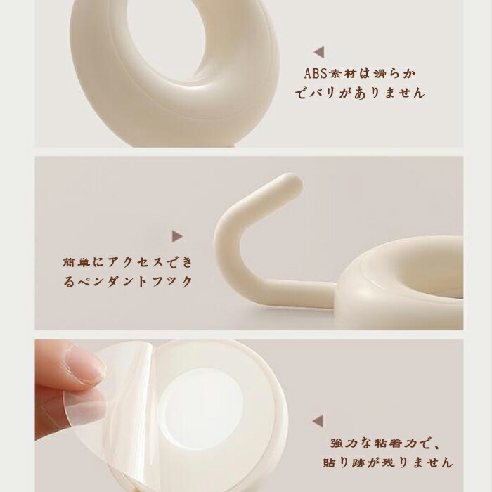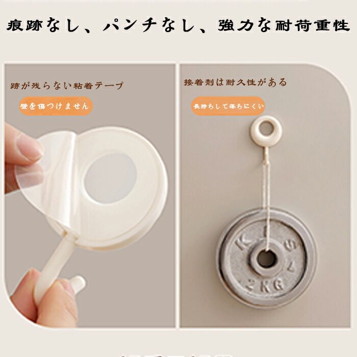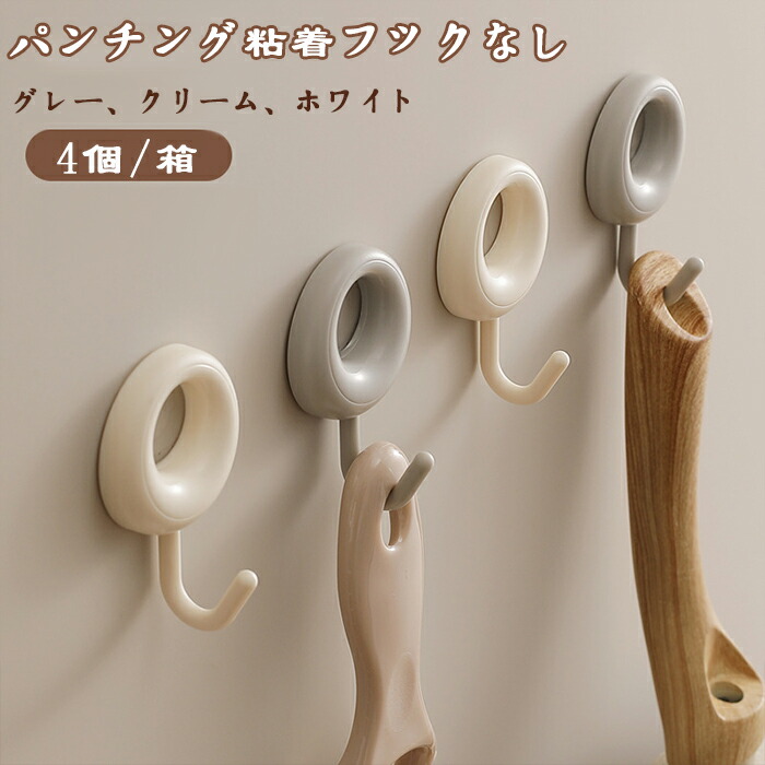 フック 強力粘着壁掛け耐荷重フック 釘 グレー クリーム ホワイト