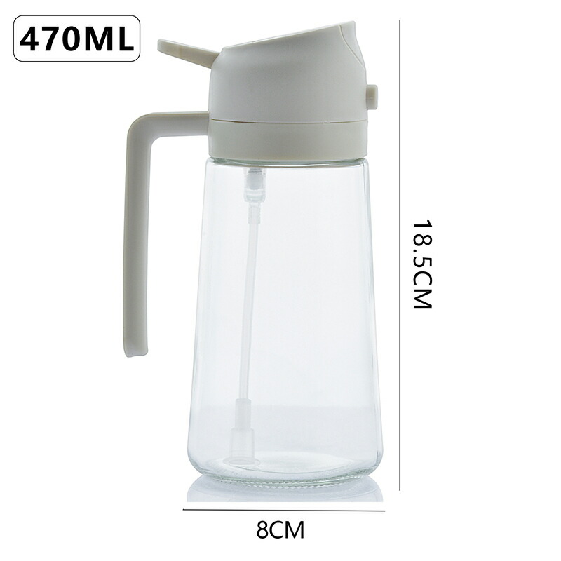 オイルスプレー 2 in 1 ガラスオイルスプレー ディスペンサー キッチンクッキング用 スプレーボトル 家庭用 470ml ガラスオイルディスペンサー