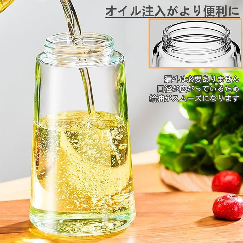 【オイル注入がより便利に】大口径のボトルは、漏斗を使わなくても食用油を簡単に入れることができます。キッチンを汚す心配もありません、もっと簡単で便利です!