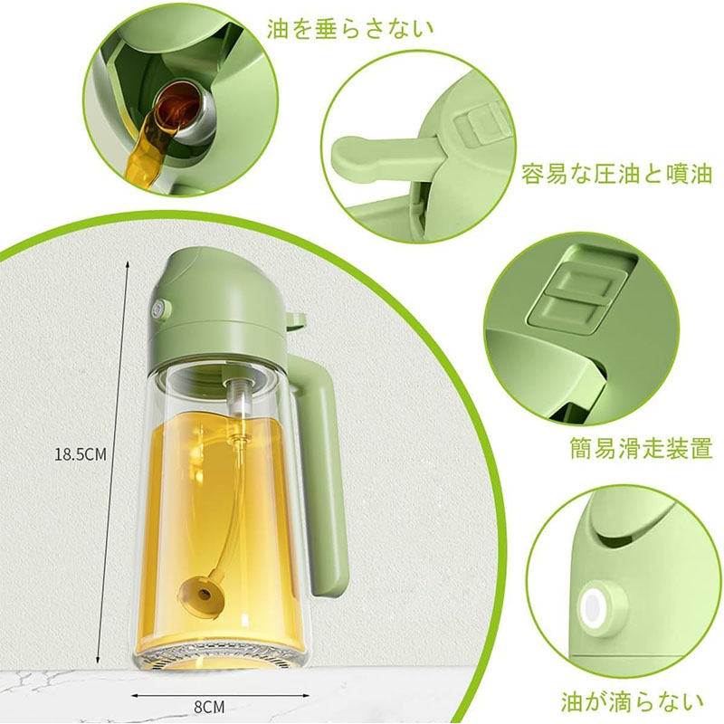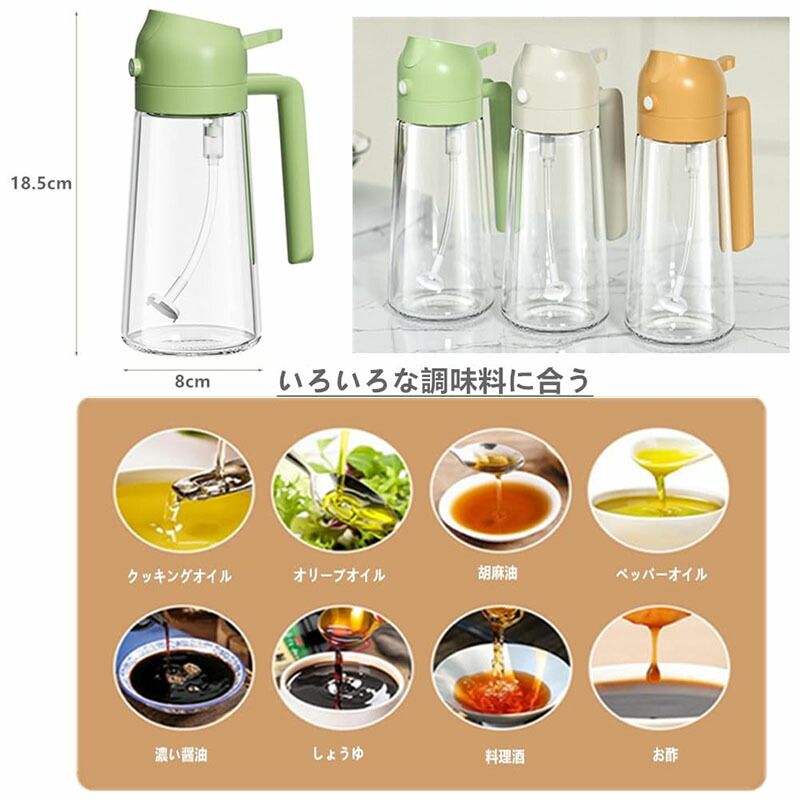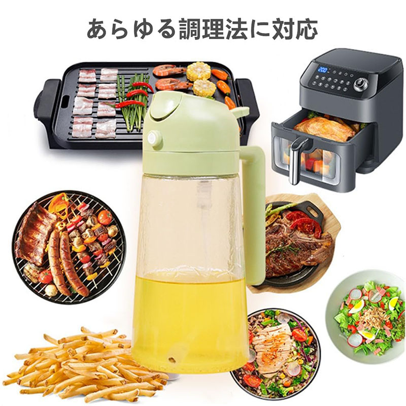 オイルスプレー 2 in 1 ガラスオ 保存容器 調味料入れ オイルポット 超目玉商品 ブラック グリーン オフホワイト イエロー 470ml 600ml