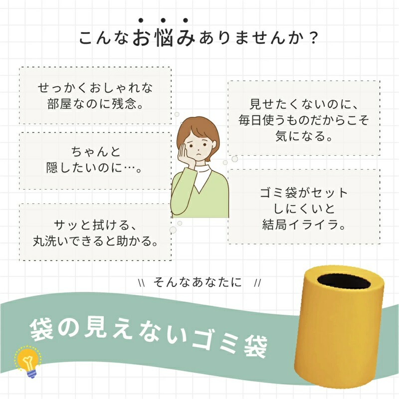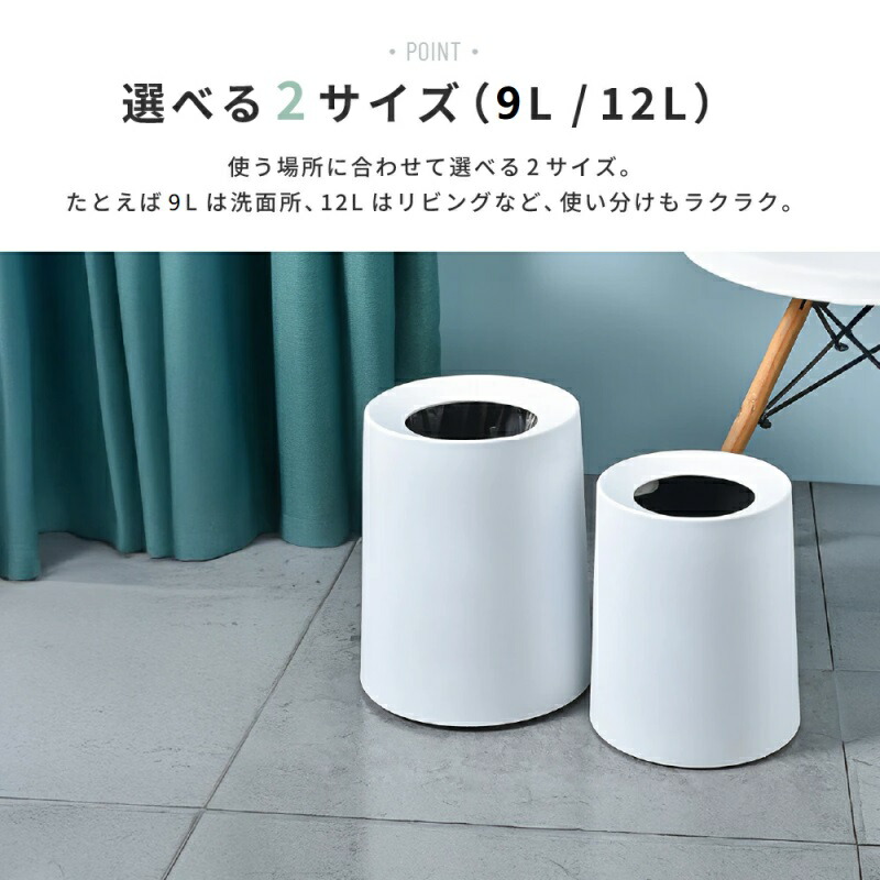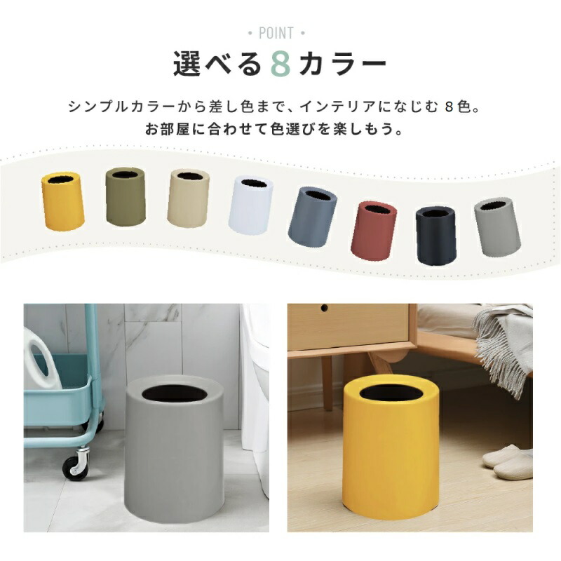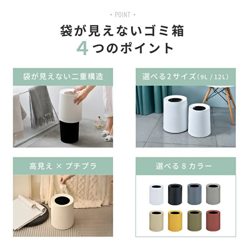 ごみ箱 袋が見えない おしゃれ 北欧 S(9L) M(12L) ホワイト ブラック ダークグレー ライトグレー カーキ イエロー グリーン レッド