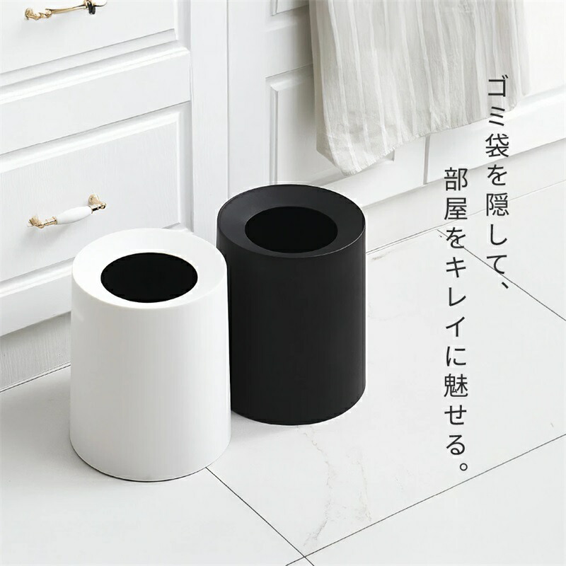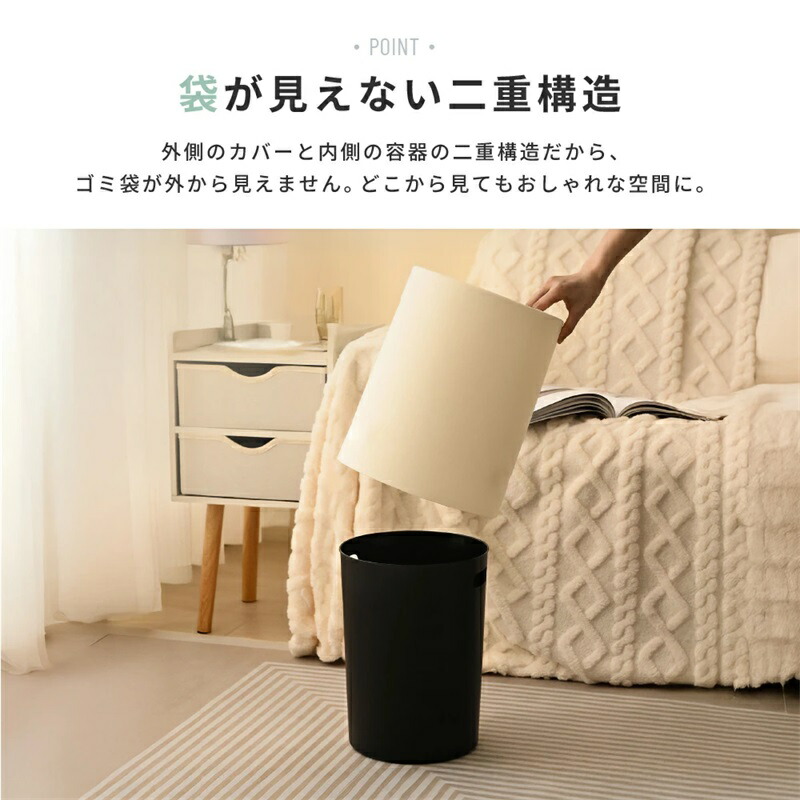 ごみ箱 袋が見えない おしゃれ 北欧 シンプル 丸型 スリム 2重構造 フタなし くず入れ 見えない ゴミ袋を見せない 新生活 キッチン ごみばこ ゴミ箱 オフィス リビング ビニー ゴミ袋が見えない