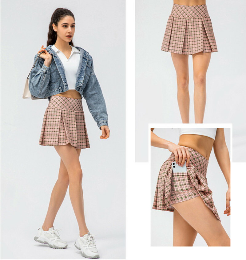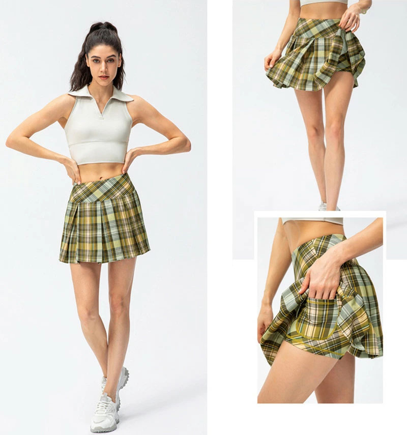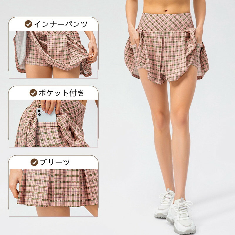 ゴルフスカート ポケット付き スコート レディース ミニ プリーツスカート チェック柄 テニススカート テニスウェア スポーツスカート 運動着 ペチパンツ付き オシャレ