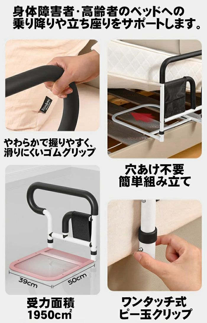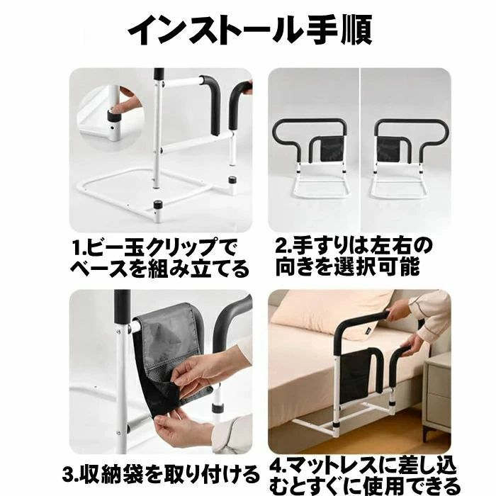 ベッド 手すり 後付け 柵 起き上がり 立ち上がり補助 3段階高さ調節可能 大人介護用サイドレール 高齢者向けのホームベ ベッド用手すり