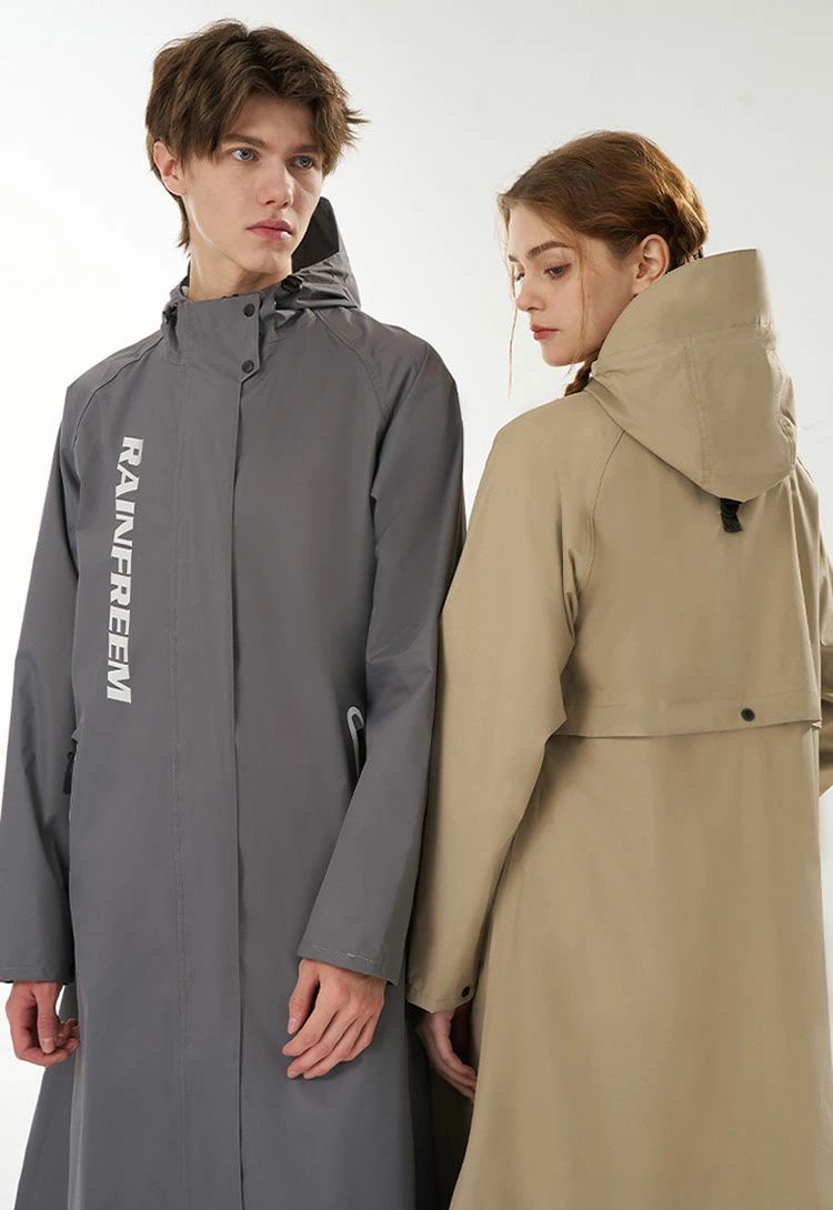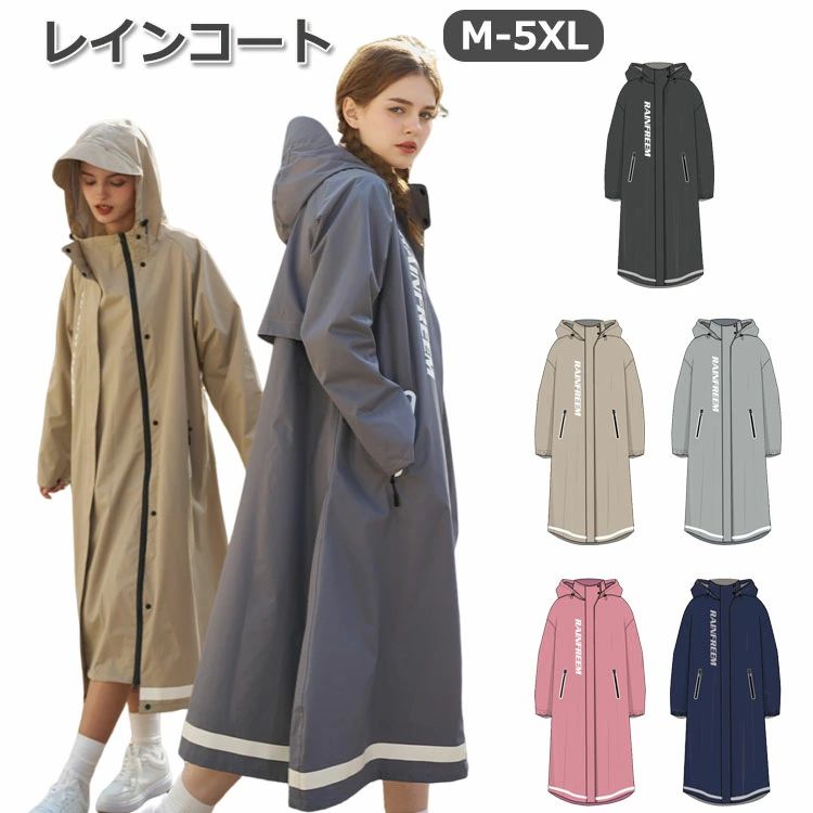 おしゃれなデザインのこのレインウェアは、幅広いサイズ展開(Mから5XL)で、どなたにもフィットするオーバーサイズを提供しています。フード付きで頭部も濡れる心配がなく、反射テープが付いているため夜間の視認性も高く、安全性にも配慮されています。防災グッズとしても優れており、台風や突然の悪天候にも対応可能です。