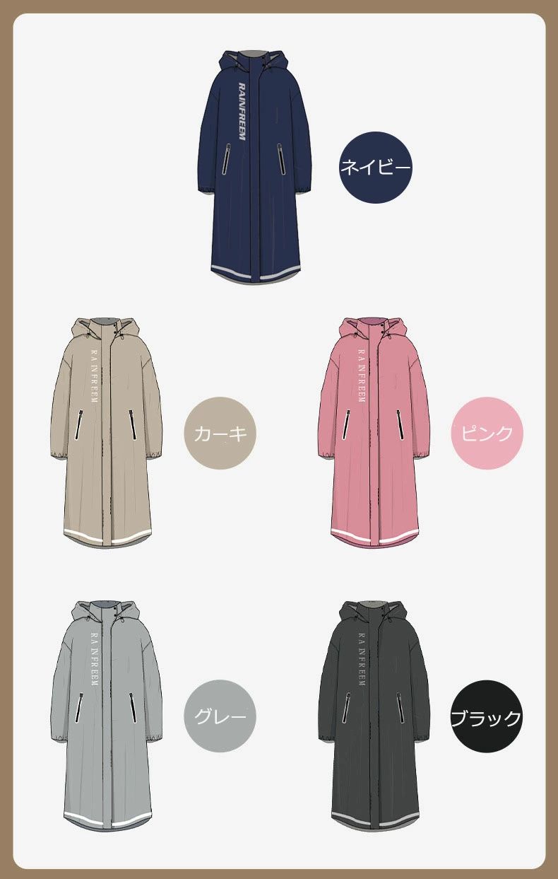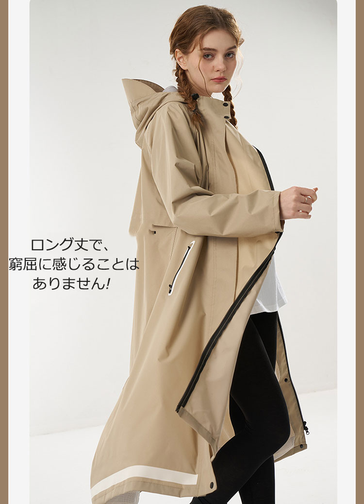 このレインコートは、実用性とスタイルを兼ね備えたアイテムで、雨の日でも気分を損なうことなく、日常生活をエレガントに彩ります。自転車に乗る方にも最適で、雨具としての役割を十分に果たしながら、街中でのおしゃれなアクセントとしても活躍します。雨の日の必需品として、このレインコートをぜひお選びください。
