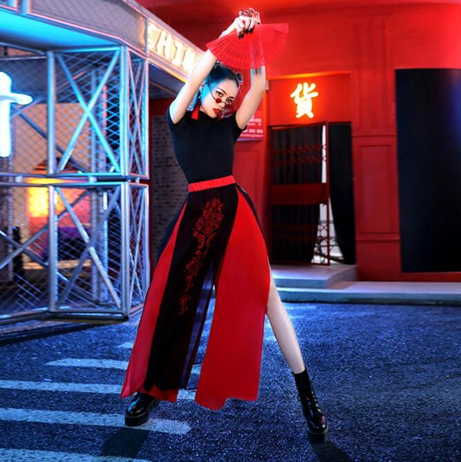 社交ダンス衣装 韓国風 レディース ジャズダンス ヒップホップ 夜店 演出服 民族風 ジャズダンス衣装 中国風 レディースダンスウェア セクシー おしゃれ 練習着 長袖 ダンス S 舞台用