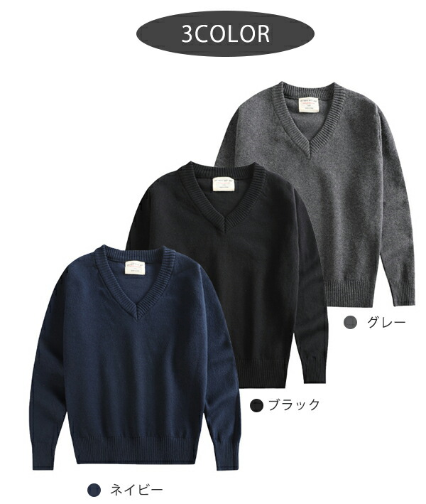 商品名:スクールセーター ニット キッズ 子供服 男女兼用 Vネック フォーマル プルオーバー 秋冬 長袖 女の子 男の子 キッズ服 トップス 上着 無地 制服 ジュニア カジュアル 防寒 幼稚園 小学校 受験服 卒園式 卒業式 入園 入学 入園準備 黒 紺 グレー