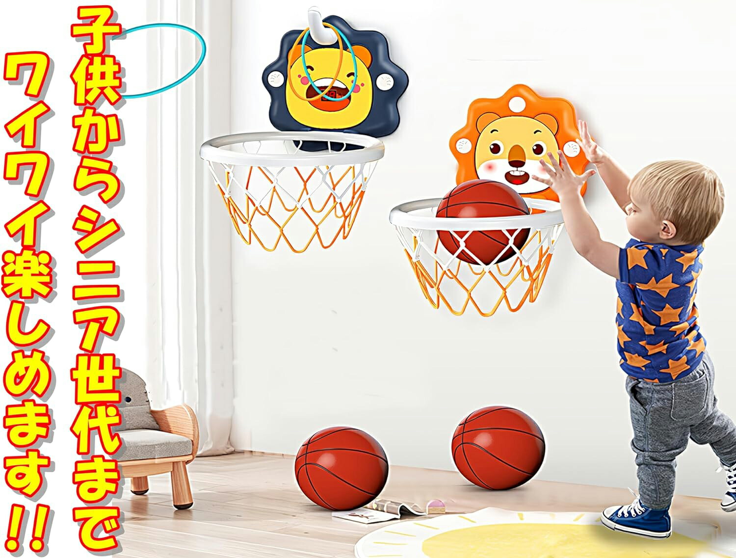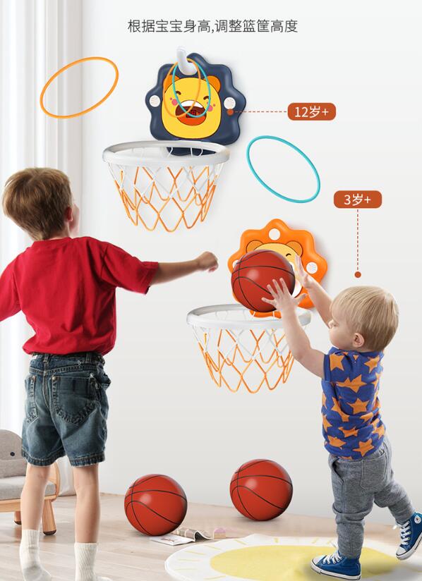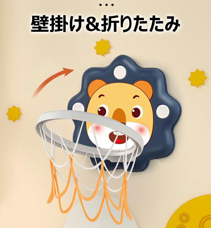 バスケットゴール 子供用 室内 屋外 おもちゃ 家庭用 壁掛け式 バスケットボール付き 輪投げ ストレス解消 成長に促進 取付簡単 シール 空気入れ 減震ゴム 付き 高さ調整 幼児 キッズ 折り畳み