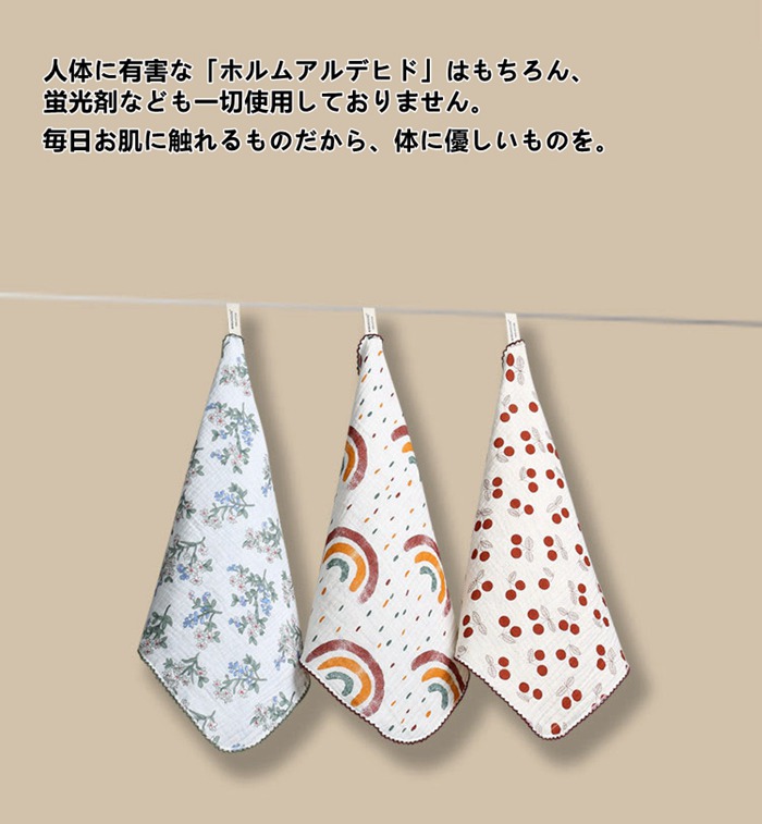 4重ガーゼハンカチ…肌触りが驚くほど優しく、上質な4層ガーゼで肌への刺激も少ない、