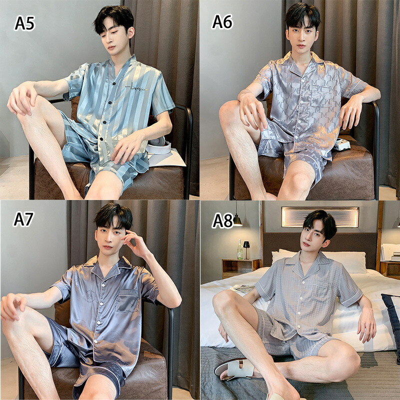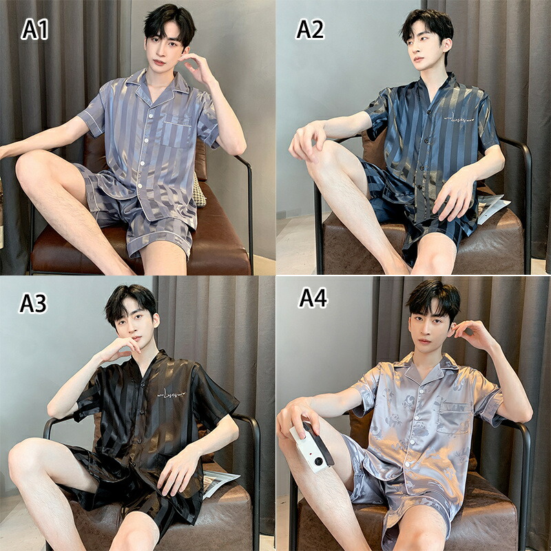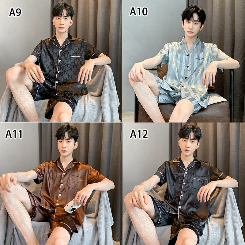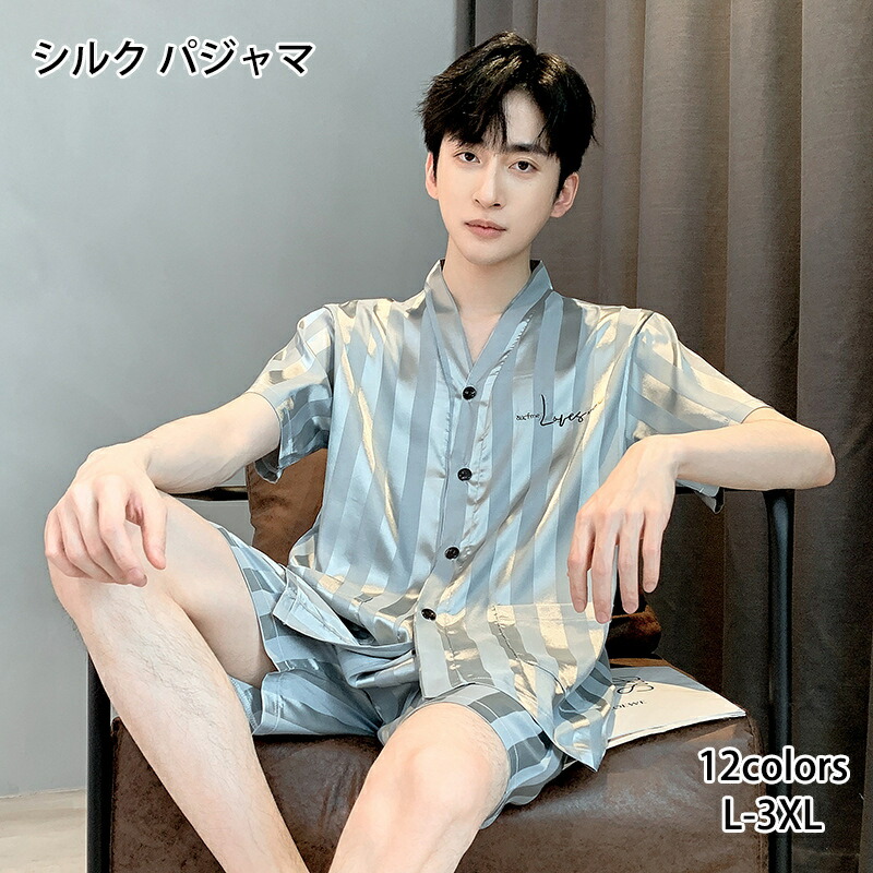 シルク パジャマ メンズ 半袖 前開き インナー 下着 ナイトウエア 早い者勝ち A1 A2 A3 A4 A5 A6 A7 A8 A9 A10 A11 A12 L XL 2XL 3XL