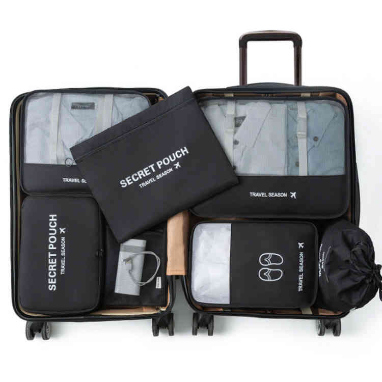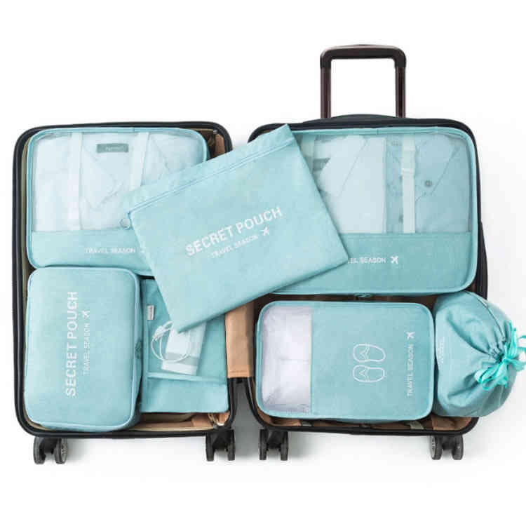 7点セットのトラベルポーチで、バッグ内がすっきり整理でき、旅での気分を楽しくさせます。