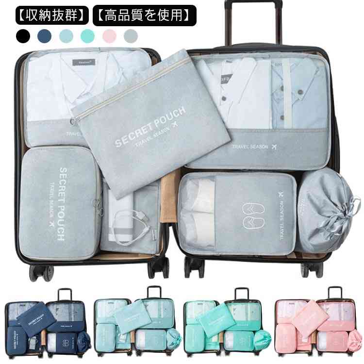トラベルポーチ 7点セット ランドリー 旅行用品 トラベルポーチ パッキングオーガナイザー 特集 ブラック グレー ピンク ブルー ネイビー グリーン