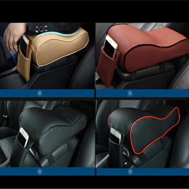 ひじ掛け用クッション 無地 車 低反発素材 合皮 ひじ掛け 手置き アームレストクッション 肘サポート 取付簡単 ゴムバンド カー用品 カーアクセサリー 車載 車用品 汎用 ポケット付き カーグッズ