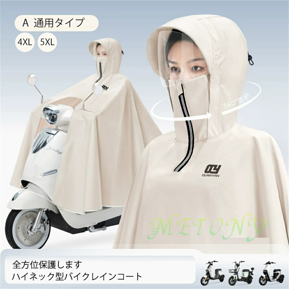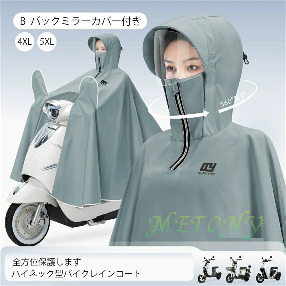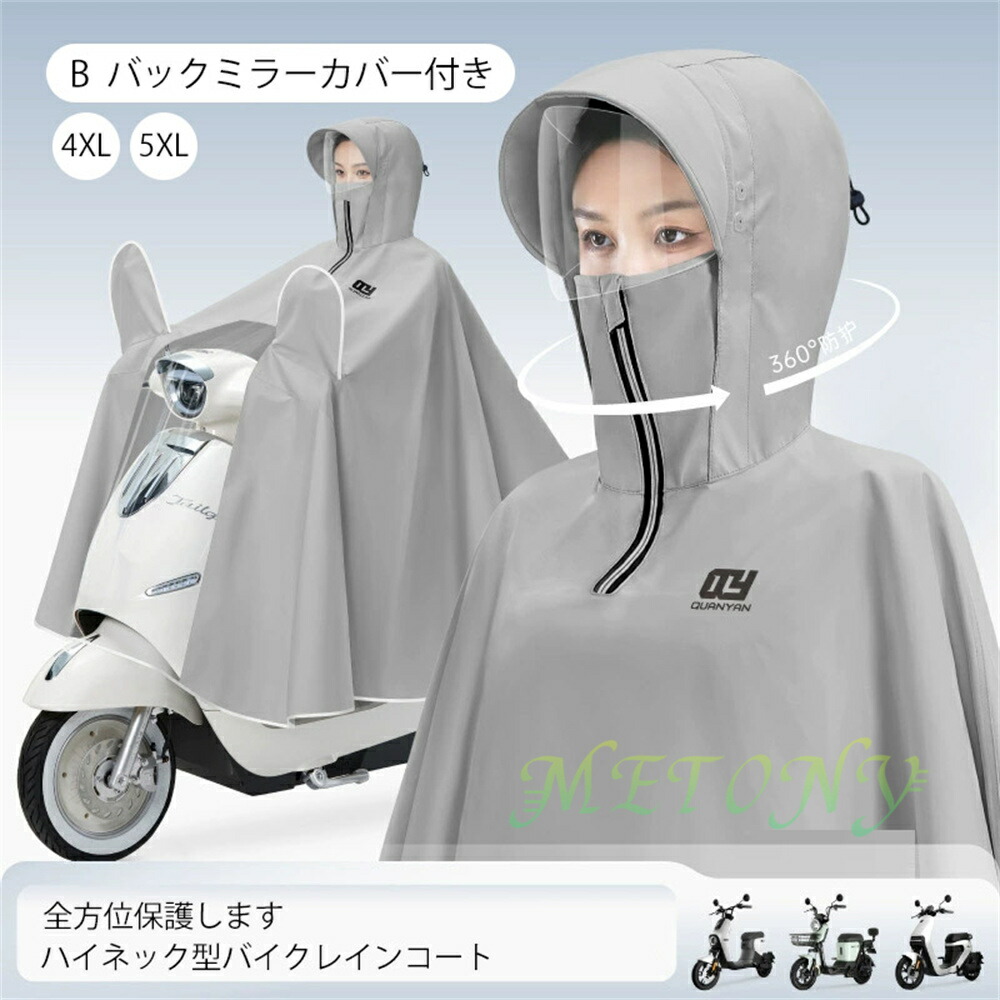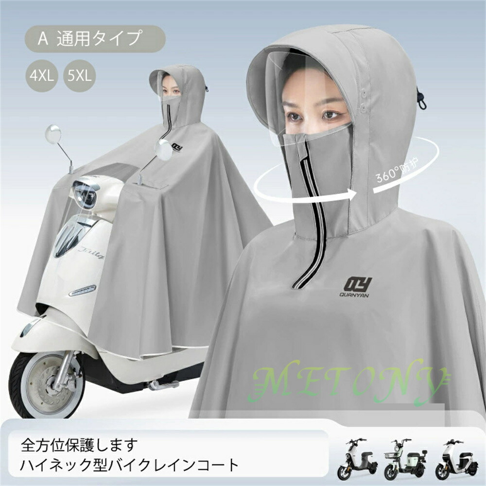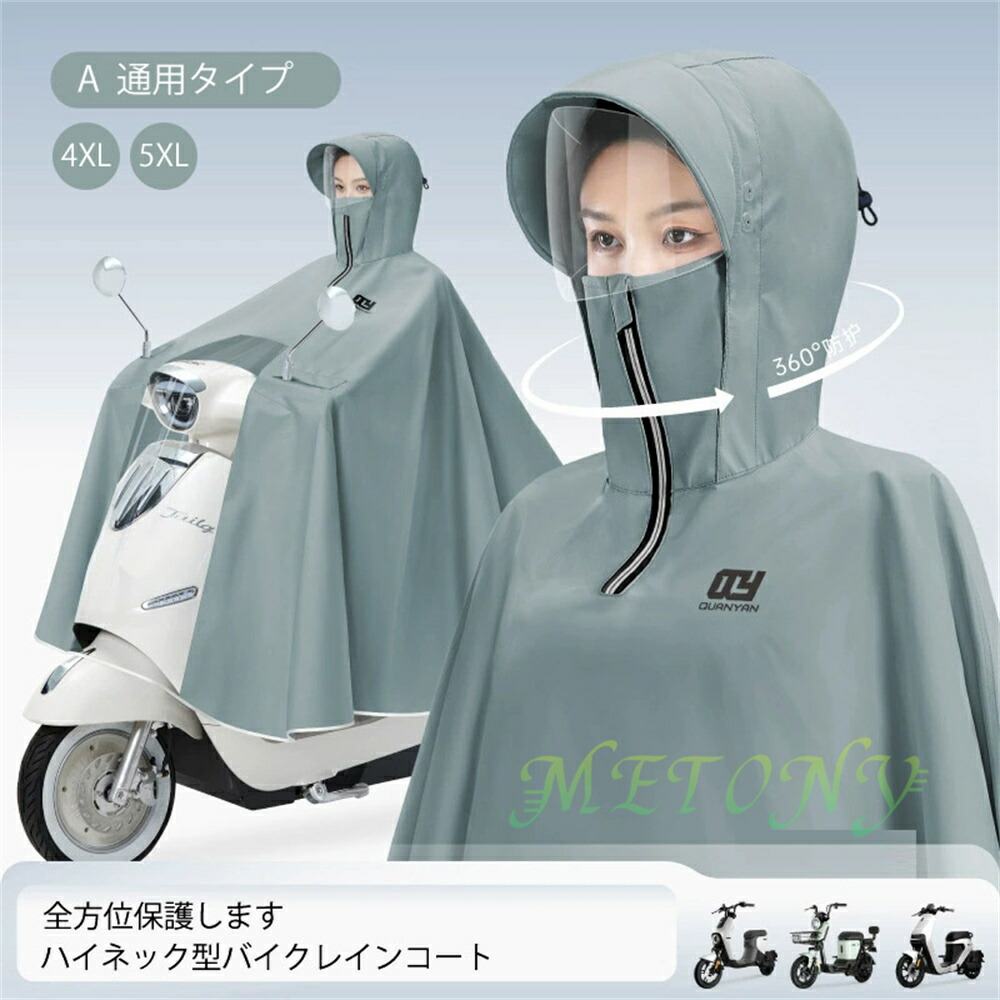 自転車カッパ 雨の日 カッパ バイク 雨具 レインコート レインウエア ポンチョ バイクカバー 4XL 5XL レイン 厚手 バックミラー ロング丈 濡れない フェースガード ツバ 視界良好