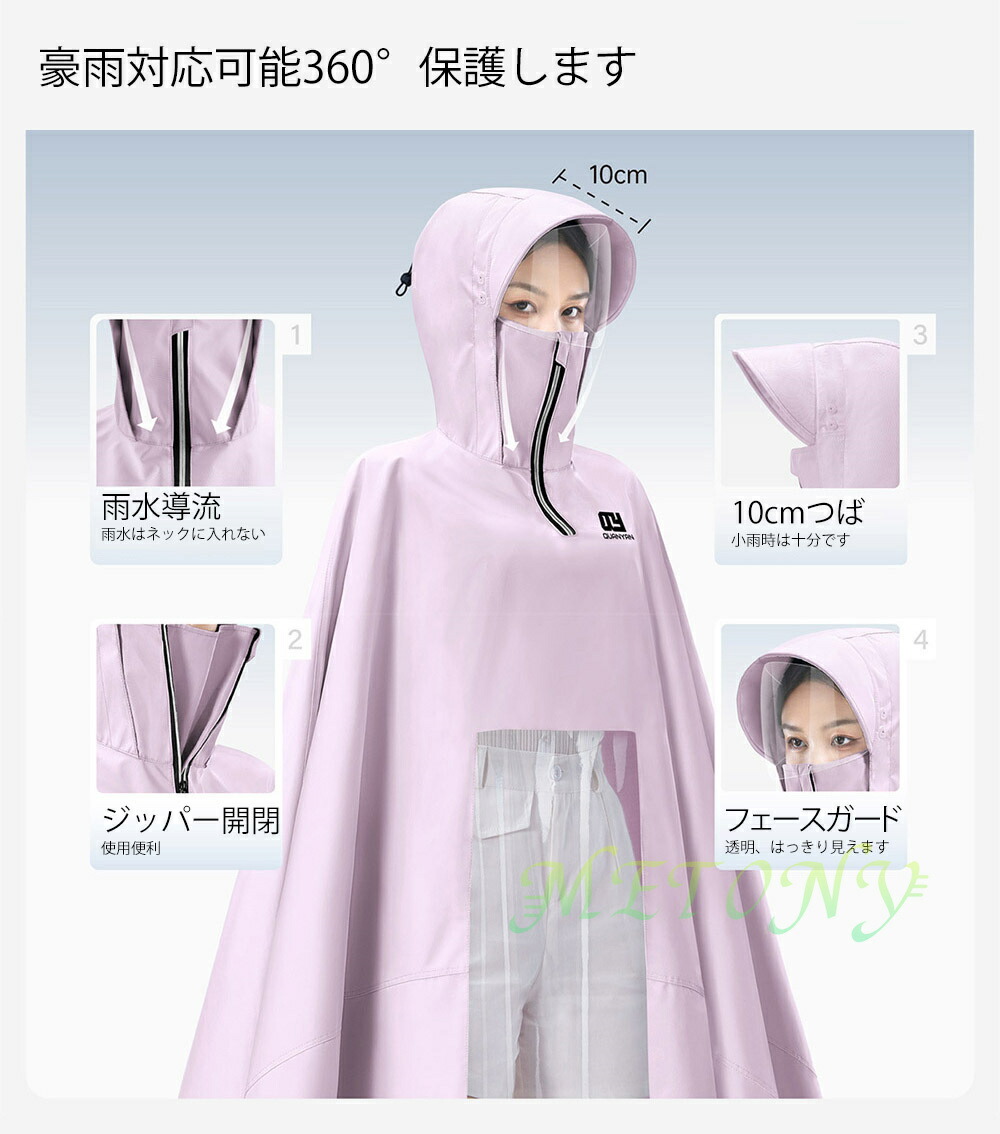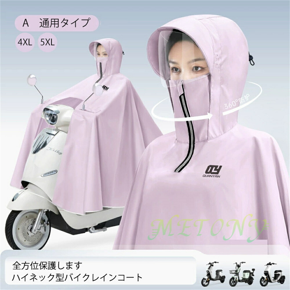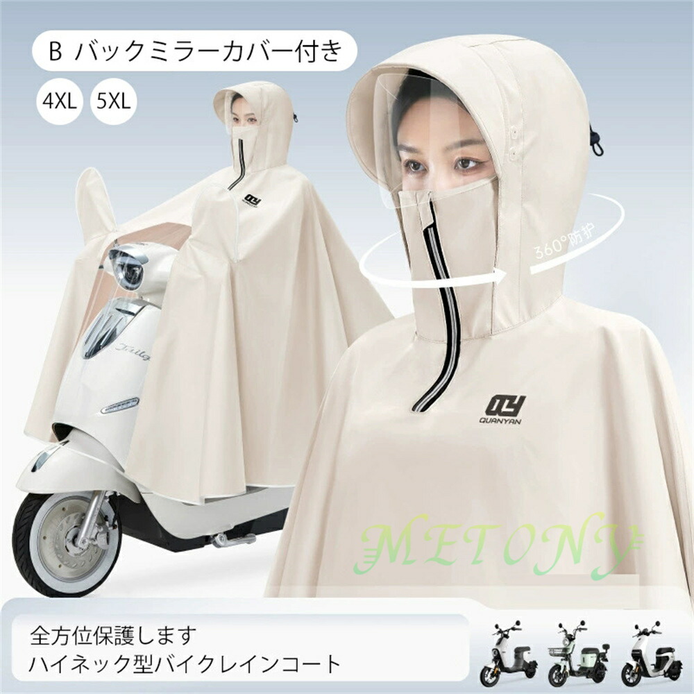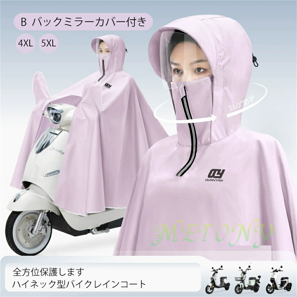 自転車カッパ 雨の日 カッパ バイク 雨具 レインコート レインウエア ポンチョ バイクカバー 4XL 5XL レイン 厚手 バックミラー ロング丈 濡れない フェースガード ツバ 視界良好