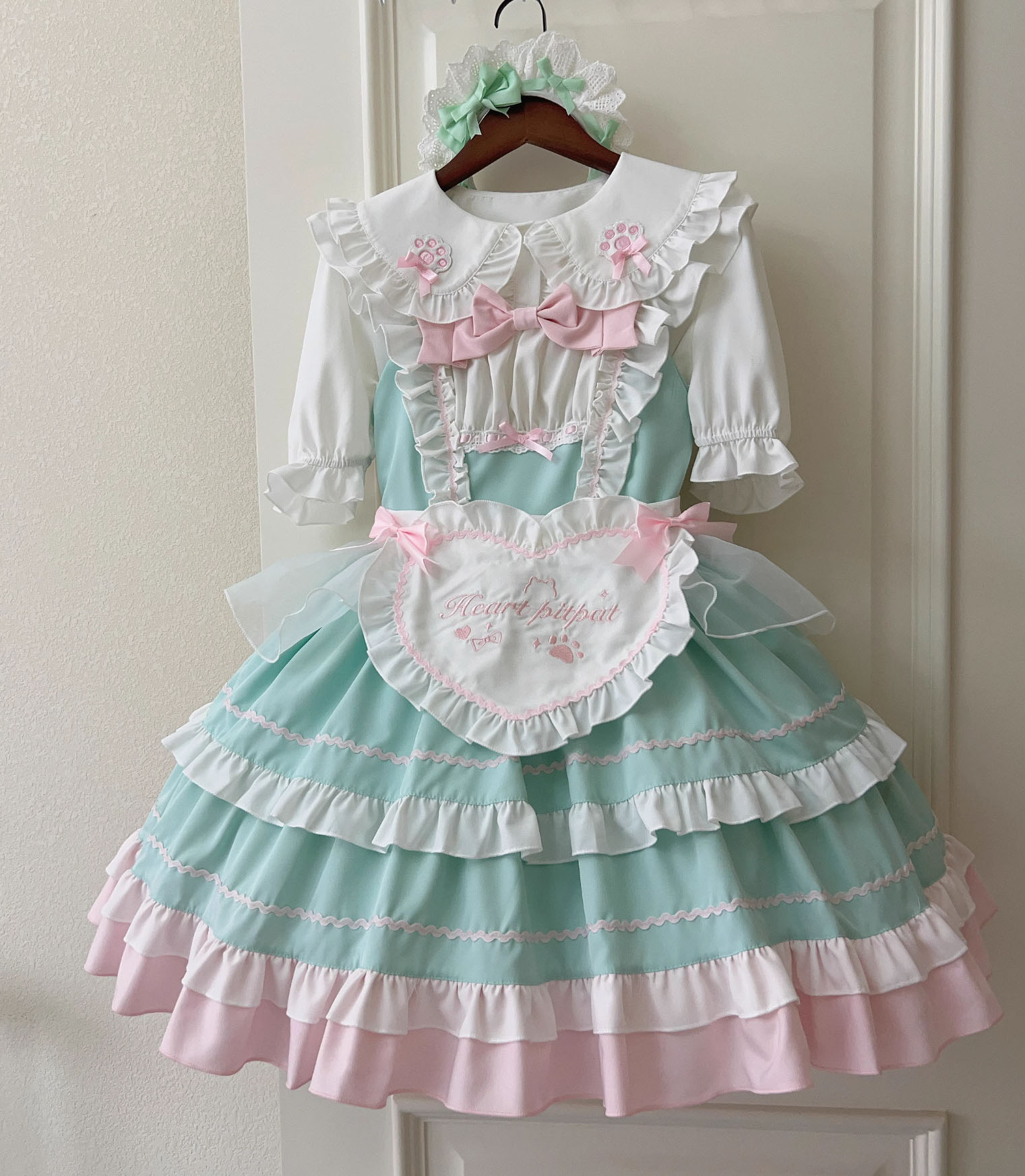 ロリータ ワンピース ジャンパースカー S M L ブルー ピンク グリーン イエロー