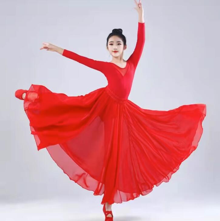 子供用 ダンス スカート 女の子 広がる ロング シフォン 飄逸 フレア キッズ ジュニア 古典舞踊 民族ダンス バレエ フラメンコ ラテンダンス モダンダ ベリーダンス