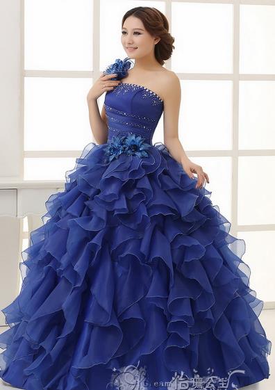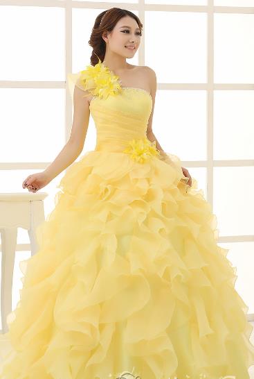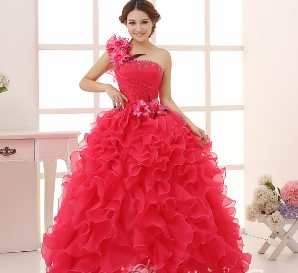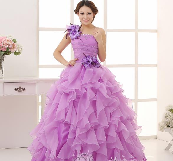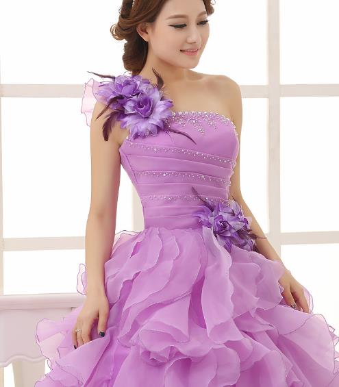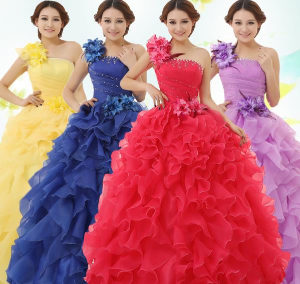 花嫁ウェディングドレス 結婚式 披露宴 二次会 礼服 パーティードレス ワンピース 二次会ドレス ロングタイプ お姫様ドレス ワンショルダータイプ 独唱 公演スカート カラー ぼうぼう 演出ドレス