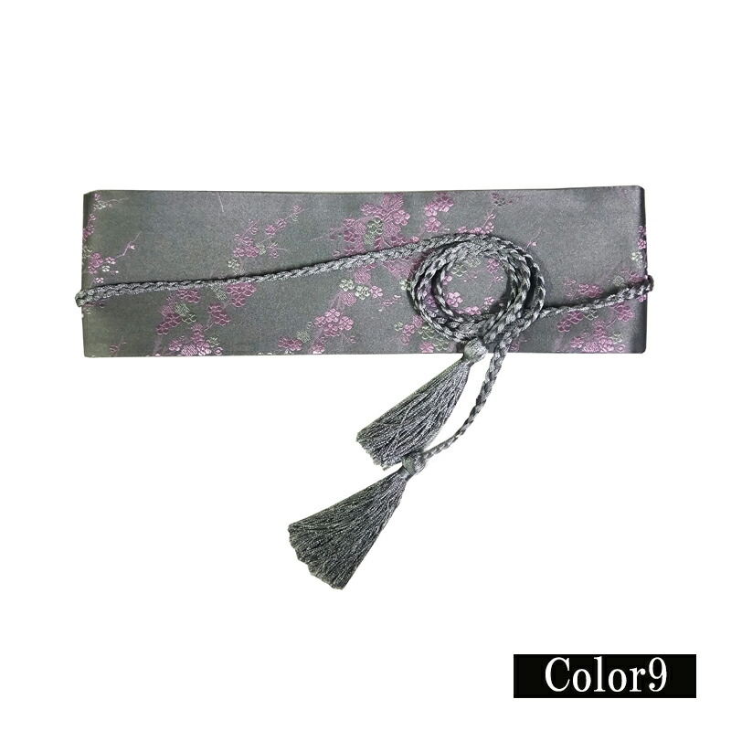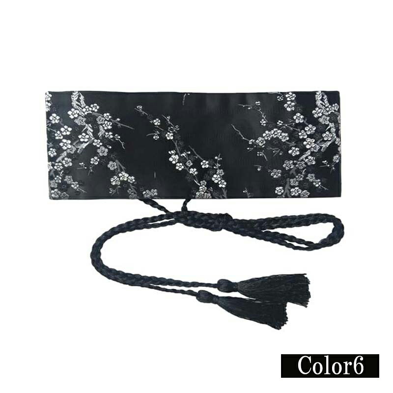 おしゃれな和風ベルト 選べる16柄 シルクタッチ サッシュベルト コルセット ハイウエスト 太ベルト ウメ柄 梅柄 花柄 和柄 帯 ウエストマーク フリンジタッセル 着物