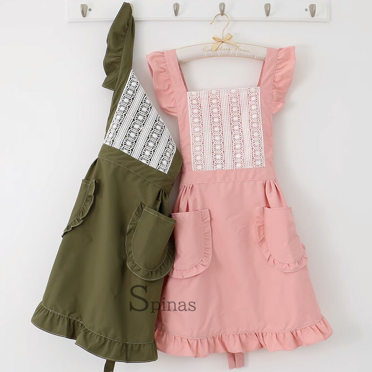 今風デザイン メイドエプロン フリル 配膳用品 キッチンファブリック エプロン 三角巾 エプロン 続々登場 ピンク アズキ グリーン ブラック ホワイト