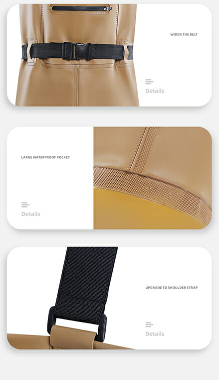 表地はpvcで作られて、防水性に優れ、サーフでの釣り、川に立ち込んで釣りに欠かせないアイテムです。