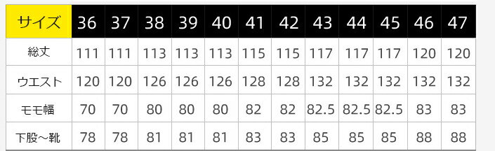 47:全長120cm ウエスト132cm モモ幅83cm 股下~靴88cm 靴サイズ28.5cm