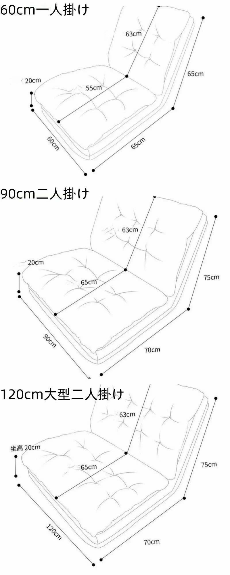 ソファーベッド 一人用 シングル ー ホワイト オレンジ ライトグレー ダークグレー 60cm一人掛け 90cm二人掛け 120cm大型二人掛け