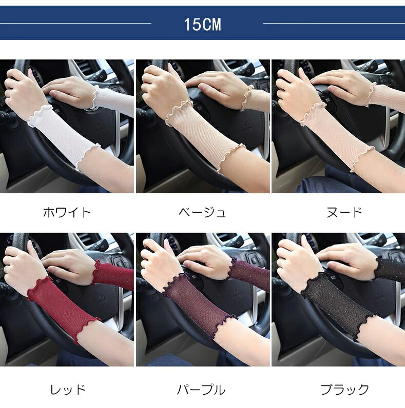 涼し気ラメ感×シースルー生地 選べる3サイズ 3組セット アームカバー レディース シアーレース リストバンド傷隠し シミ隠し 付け袖 UV対策 オシャレ アームスリーブカバー