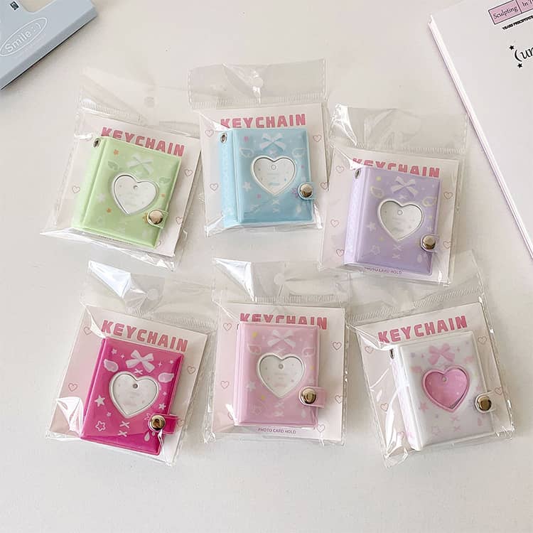 ミニアルバムキーホルダー シール帳 ミニシール帳 32枚収納 ハート アルバム 手作り 写真入りキーホルダー 推し活グッズ カバン掛け フォトアルバム 結婚式 誕生日 応援 女の子 思 結婚記念日