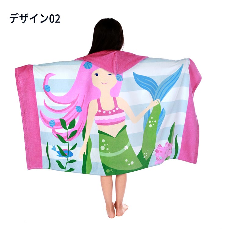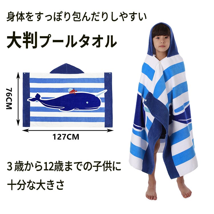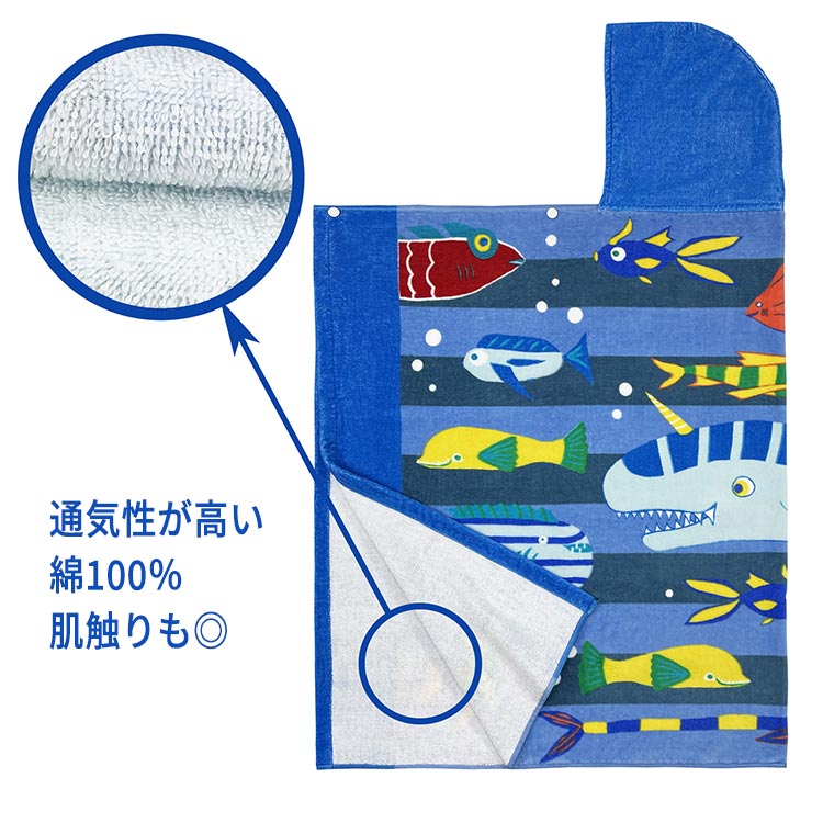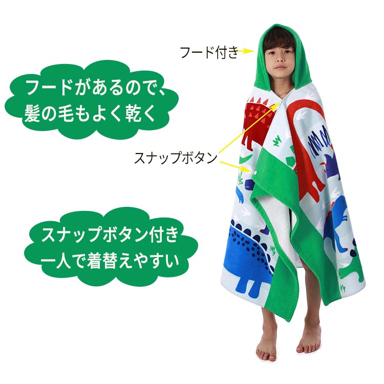 バスタオル キッズ 綿100% コットン ビーチタオル サーフポンチョ フード付き プール 海水浴 お風呂 タオル バスポンチョ お着替えポンチョ ビーチポンチョ スナップボタン ポンチョ