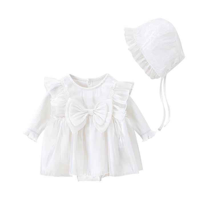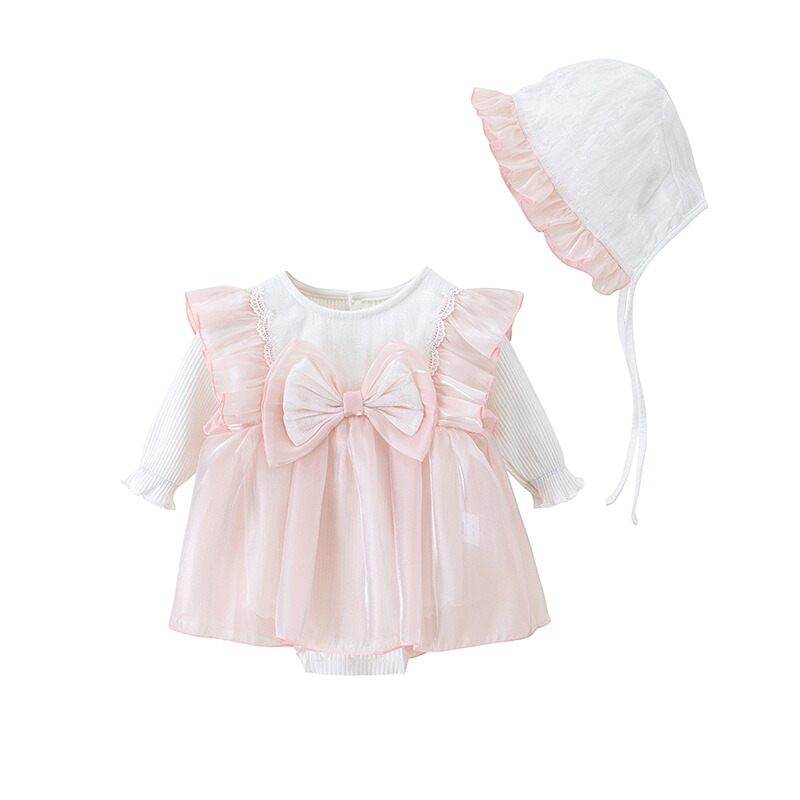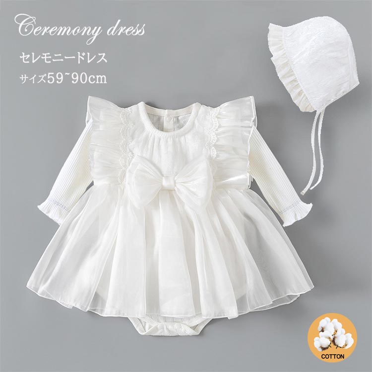 セレモニードレス ロンパース 新生児 女の子 帽子付き ベビードレス カバーオール 長袖 2点セット 刺繍 レース ワンピース かわいい フォーマル お宮参り 結婚式 七五三 寝相アート 出産 退院着