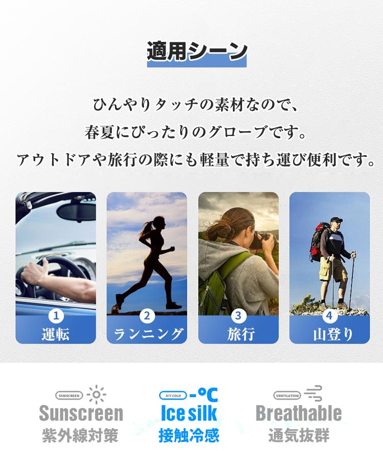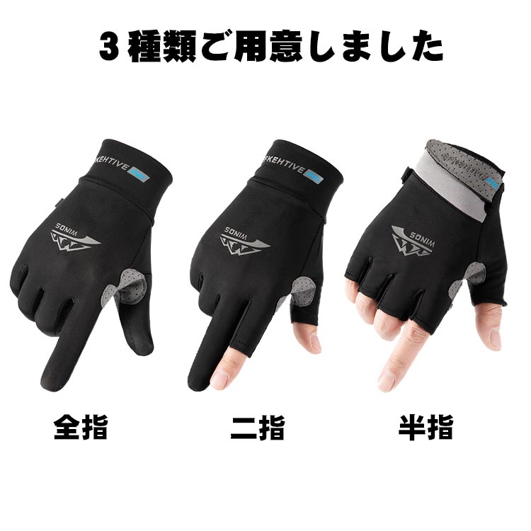 uvカット グローブ 冷感 手袋 メンズ レディース バイク ゴルフ スポーツ 春夏 二指 半指 全指 スマホ対応 日焼け止め 滑り止め加工 日焼け防止 通気 吸汗速乾 サイクリン メッシュ