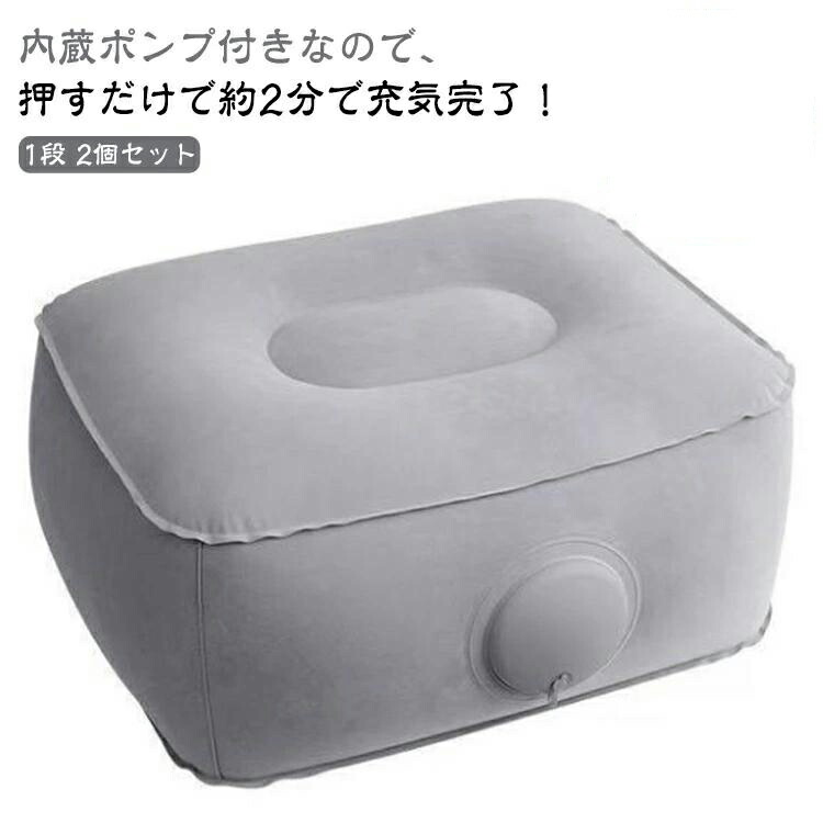 内蔵ポンプ 空気 折りたたみ 1段 押すだけ エアークッション 2個セット クッション エアー 高さ20cm 足置き 足置きクッション デスクワーク 足置き台 飛行機 車 新幹線 オフィス 会社 電車