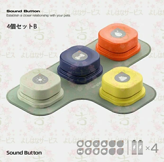 新品発売 犬用 録音ボタン 会話ボタン 音声ボタン ベル コミュニケーション トレーニング しつけ訓練 知育 おもちゃ 4色セット ペット