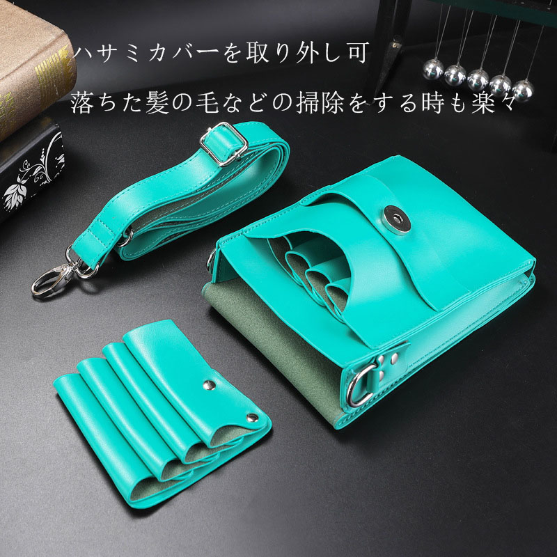 シザーケース ハサミ8丁 本革 シザーバック 無地 おしゃれ 理容師 理髪師 美容師 トリマー用 ツール収納バッグ プロ用ヘアクリップ カットコーム収納ポーチ 床屋 肩掛け 腰掛け サロン